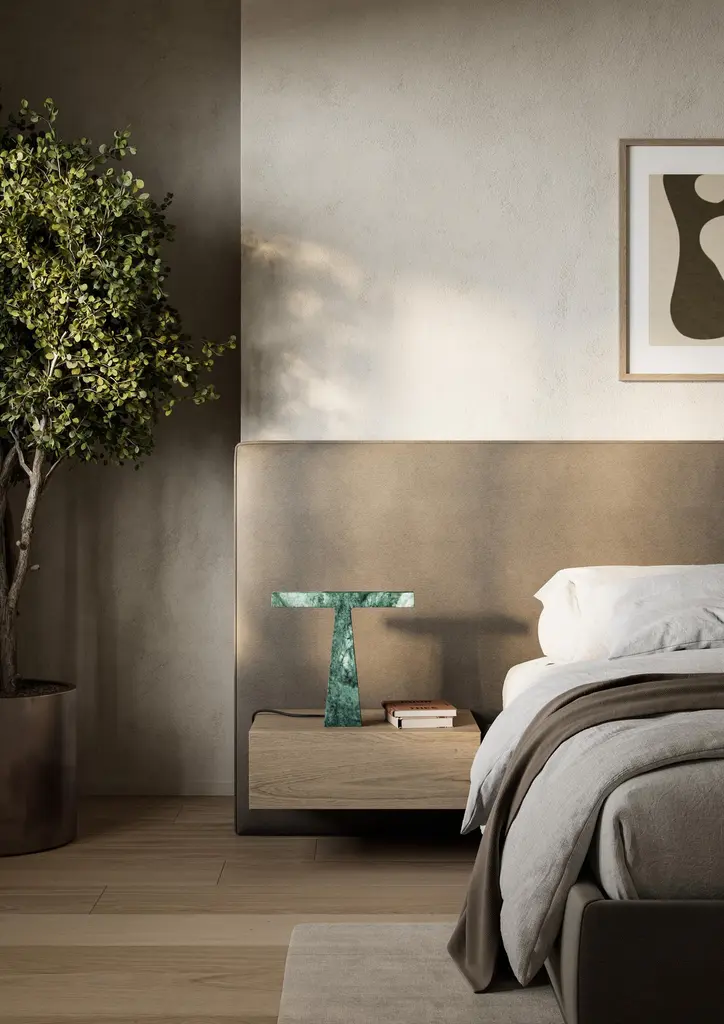 New Modern Lamp In Green Guatemala Marble, Creator Niko Koronis