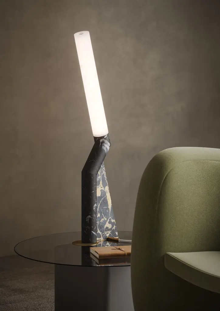 Lightness and vitality. Bec Brittain’s study of weights and proportions wasn’t meant to be a pure sculptural exercise but, rather, aimed to make marble more her own, an everyday material. With its inner light, “Heron” glides over the desk or table in an elongated, slightly angular shape reminiscent of the bird it draws inspiration from even in its colors (white, ash grey, pink). “Heron” sees with the eyes of the soul, with the intimate light of marble.Nero Marquinia, Nero Portoro and Bianco Michelangelo Marbles.Size: 84.6 x 18.1 x 26.7 x 6 Ø cm. Commercial name: HERON, by the American designer Bec Brittain. Also available in Egyptian pink, Fior di Pesco Carnico and white Michelangelo Marbles.Made in Italy, hand finished.The lamps are sold and shipped without power supply and dimmer switch that anyway are complimentary and shipped to customers directly through amazonThe lamp electrical components are UL certified for sales outside EU. The lamps are CE certified for sales inside EU