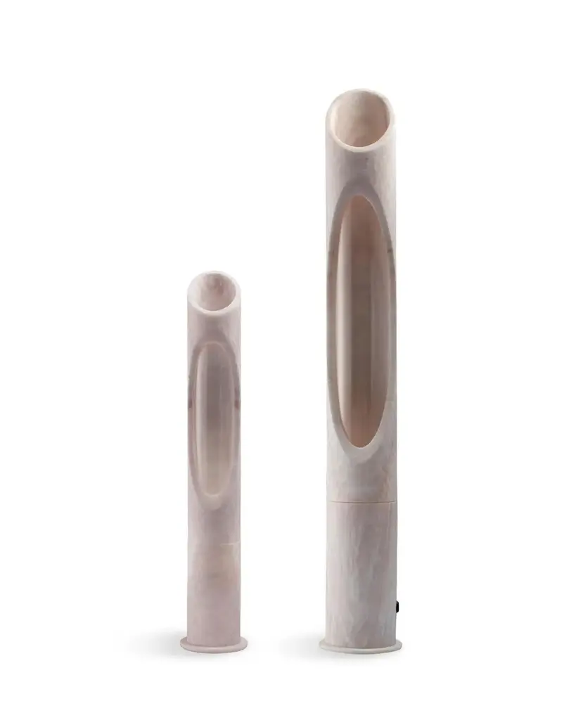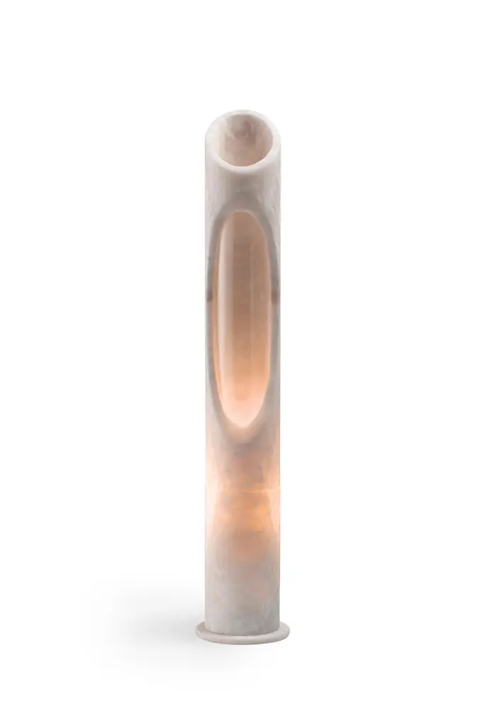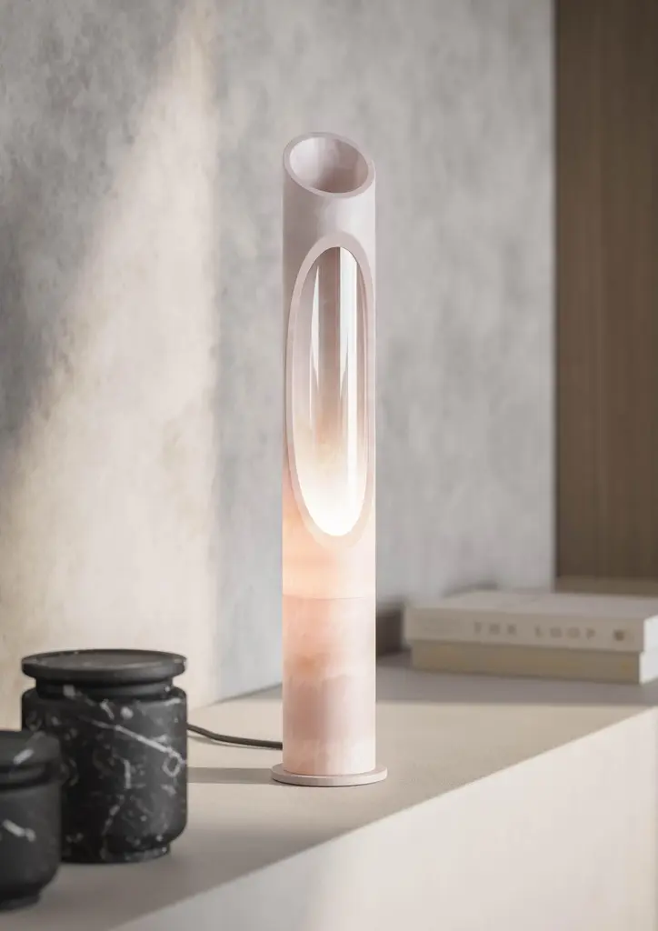 Lamp S in Pink Egeo marble, designed by Jacopo Simonetti.Available also in Black Marquinia, White Arabescato, Onyx White marble and in the L version. Armonia Collection: Inspired by the captivating image that two contrasting elements can create,Jacopo Simonetti draws the lines of his new collection Armonia, a pleasinginterplay of void and full that run over each other, in search of a balance, likenotes agreeably arranged in a melody.Vases and Lamps are designed with minimal forms, characterised byperfectly carved oval shapes, to convey a sense of elegance and lightness, as if they were suspended in the air, in a place far from time.Intriguing accessories that shine through the ethereal nuances of Rosa Egeomarble, a precious material that makes us travel to Greece, the mythologicalland where this material is rooted.
