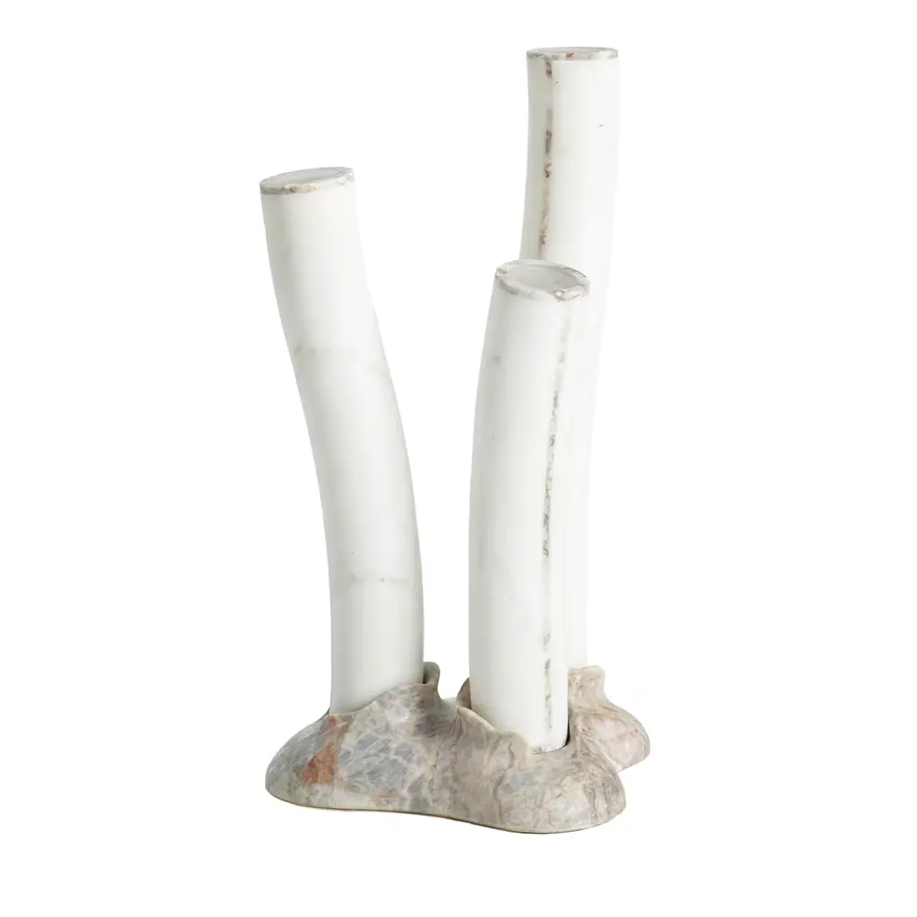 Table lamp in Bianco Michelangelo and Fior di Pesco Carnico Marbles.Vibrations of light and matter“The sculptor doesn’t try to translate his thought into marble: he thinks in marble, directly, as if everything were already marble,” wrote André Gide. His words perfectly sum up Jacopo Simonetti’s work and style. The young designer has created a lightweight yet eternal lamp, vibrant and bright yet porous. He thought in marble, like someone who has long known and worked with this exquisite material, drawing inspiration from the gentle, sinuous lines of coral reefs. Marble and coral, both of them exquisite and delicate, elegant and natural materials. The result is a lamp whose light pairs with the uniqueness of marble to recreate the allure of the marine world for a cosy, exclusive Ambience. Also available as a single table lamp and floor lamp.Size: 28 x 48.5 cm, 11.0 x 19.1 in. Commercial name: TheReefLight_Triptych, by the young tuscan designer Jacopo Simonetti.Made in Italy, hand finished.The lamps are sold and shipped without power supply and dimmer switch that anyway are complimentary and shipped to customers directly through amazon The lamp electrical components are UL certified for sales outside EU. The lamps are CE certified for sales inside EU.