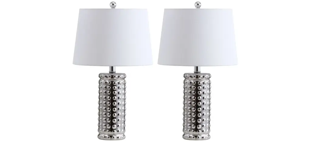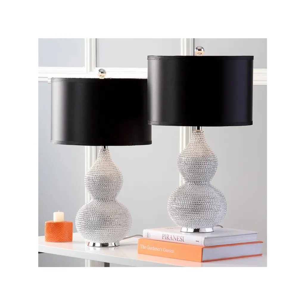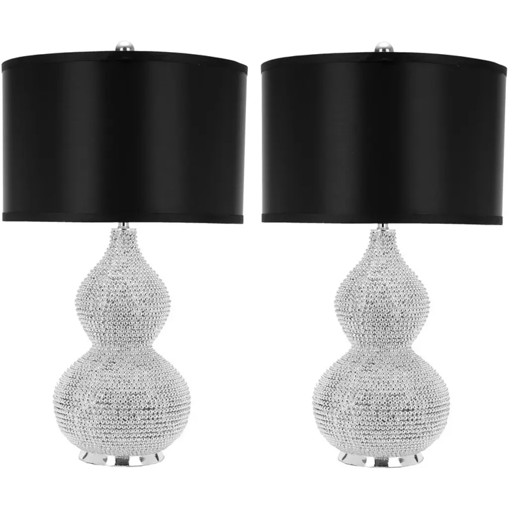 Nicole Beaded Table Lamp W/ Usb Port (Set Of 2) - 24.5 Inch Height - Lit4014 - Silver - Safavieh