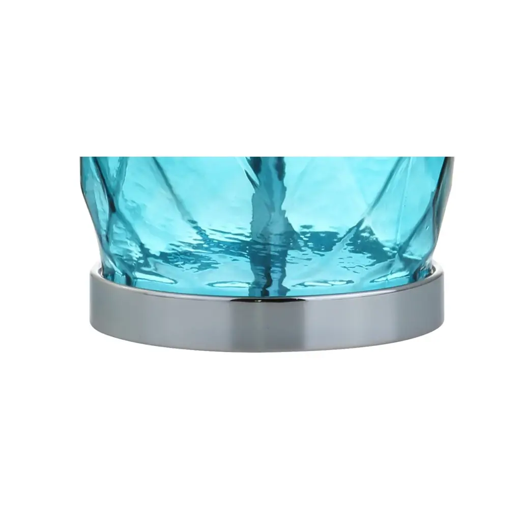 A light tint of gray emphasizes the beautifully faceted shape of this glass table lamp, reminiscent of precious gemstones. Subtly stylish and simultaneously classic, the chrome base and finial add modern touches to an elegant base. We love how the designer touches extend all the way to the plug with a silk-wrapped cord.Features:Dimensions:About us:You see a lamp.We see a decorative work of art.A perfectly curved shade casts a dramatic shadow on a floor. A silk cord you never want to hide. LED lightbulbs: as easy on the environment as they are on the eyes. The JONATHAN Y Lighting collection considers every detail from impeccably sourced materials to designer styling. And our prices are so attractive, we've transformed a functional necessity into a fashion accessory.JONATHAN Y Lighting - a fashion revolution in home decor.