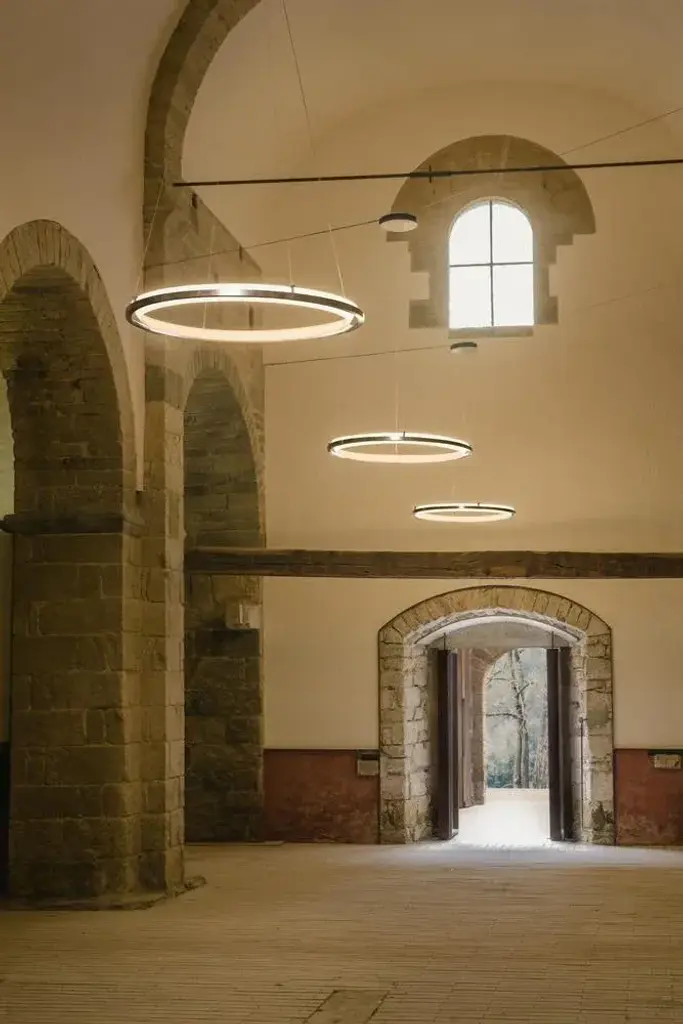 Nimba pendant lamp by antoni arola. Dimensions: d 120 x h 8 cm. Materials: steel, pvc. Available in 4 sizes: d60, d90, d120, d180 cm. Available in matte or golden finishes. Nimba is a floating halo of light whose clever composition diffuses light in all directions without glare. It is formed by a metal profile that houses the light source and an inner shade that diffuses the light. All four models feature leds, seamlessly combining simplicity with modern technology. Santa & cole is a small, independent and global editor of design products, with its roots in belloch (barcelona, spain). We have been editing since 1985, when the company was first founded. By editing we mean preparing a work for the public domain, we mean adapting an item for everyone’s use. What a book editor does with stories, we do with objects. More than eighty creators have contributed to a rich catalogue of furniture and lighting products originating in very different contexts, by renowned designers such as antoni arola, miguel milá, andré ricard and llmari tapiovaara. Acute and attentive to quality and detail, santa & cole outsources all of its industrial production to an extensive network of suppliers, mainly in spain, but also in other countries such as japan, where the washi paper for our tekiò lamp is made. Our mission is to build, safeguard and disseminate knowledge through design objects. Objects whose quality is recognisable at the touch of a hand, and that enrich people’s lives, whether at home or in shared environments. Our philosophy is more modern than futurist and we are more intrigued by silence than by stridency. Our focus is not the present market, but the future one; not barcelona, but the world; not fashion, but history. All our lamps can be wired according to each country. If sold to the usa it will be wired for the usa for instance. This piece is attributed to the mentioned designer/maker. It has no attribution mark and no official proof of authenticity, however it is well documented in design history. I take full responsibility for any authenticity issues arising from misattribution, up to 250v (europe/uk standard).