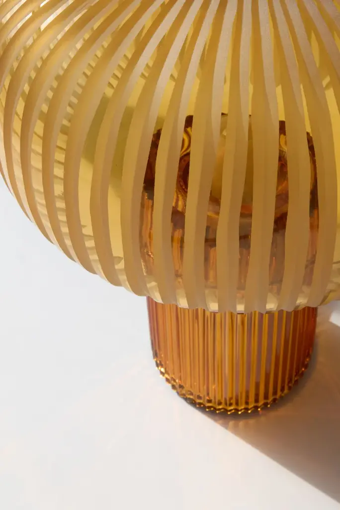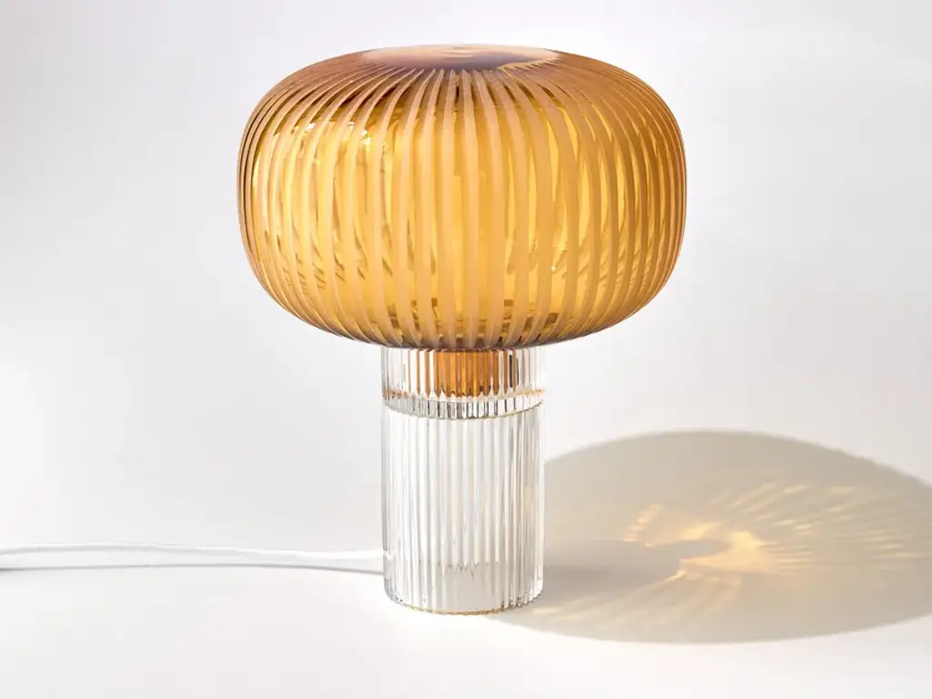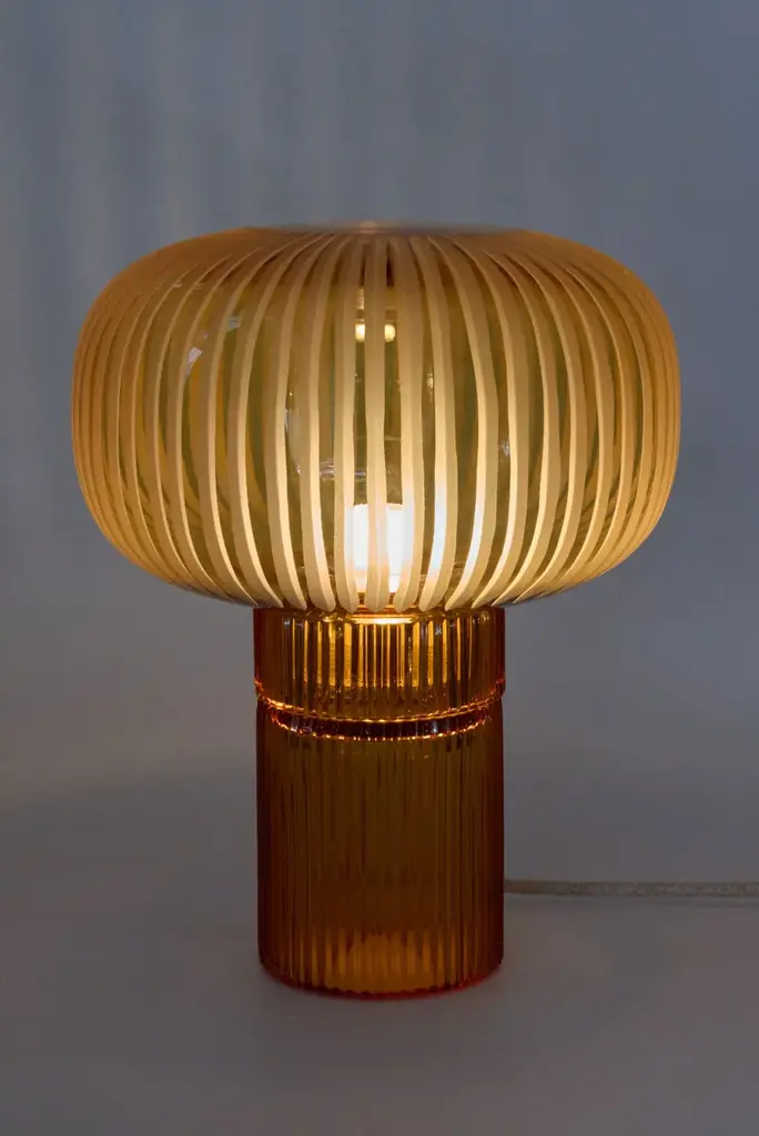 NINA+GRANDE is a table lamp made of hand-blown glass.Inspired by the elegance of a small Roman column, the “Colonnina,” is a hand-blown lead crystal table lamp that reinterprets classical forms with a modern perspective. Its column-like, hand-engraved crystal base creates captivating light effects and reflections, adding depth and sophistication. A true symbol of elegance and proportion, NINA enriches any environment with luxurious artisanal design. The top can be replaced to create customized combinations and can also be used as an elegant flower vase.Featureshand-blown and shaped in Italycolor base: amber or transparentshade colour: ambermaterial: pure lead crystal glasscable: fabric-coated electrical wire