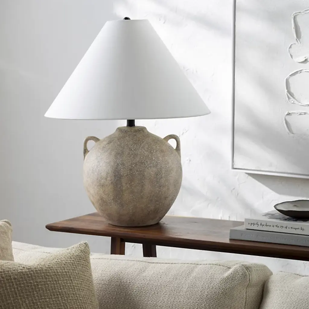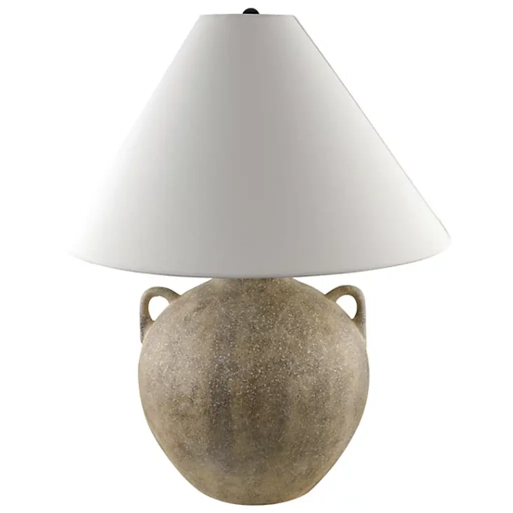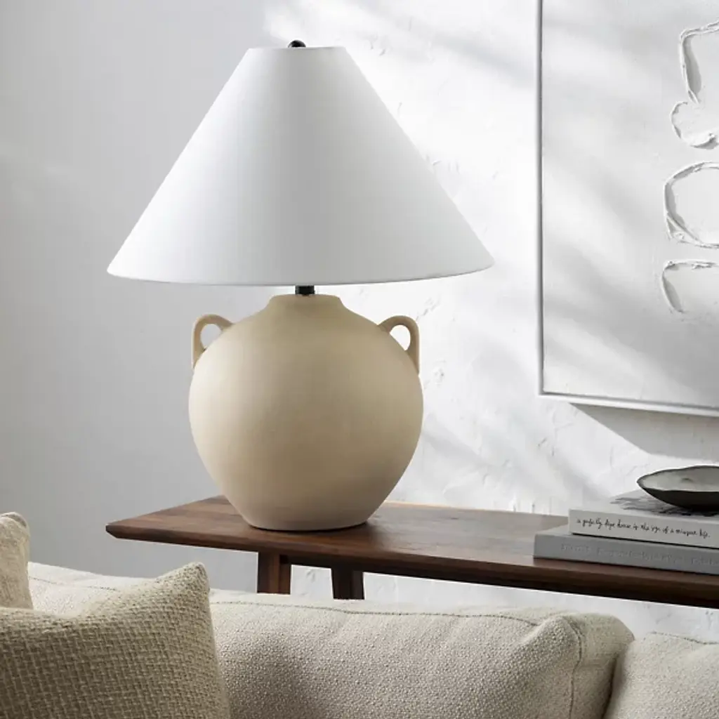 The Nivalis Table Lamp from Surya brings the unique texture of handcrafted ceramics to your home, with subtle variations that tell the story of its creation. The lamp's linen bell shade directs light both upward and outward, perfect for reading corners or conversation areas. You'll find the simple on/off switch refreshingly straightforward. Behind the scenes, a sturdy polystyrene interior gives the shade lasting durability, while the iron finial adds just the right finishing touch. This lamp feels right at home on bedside tables, entryway consoles, or living room end tables, where thoughtful lighting can elevate your daily routines.