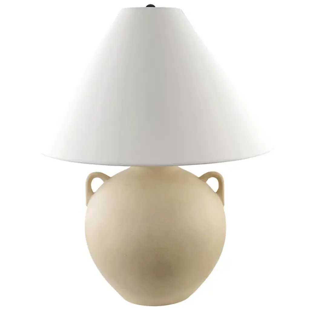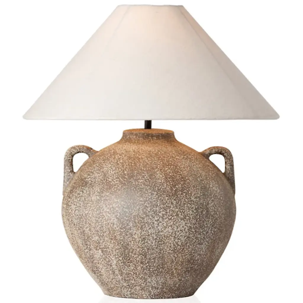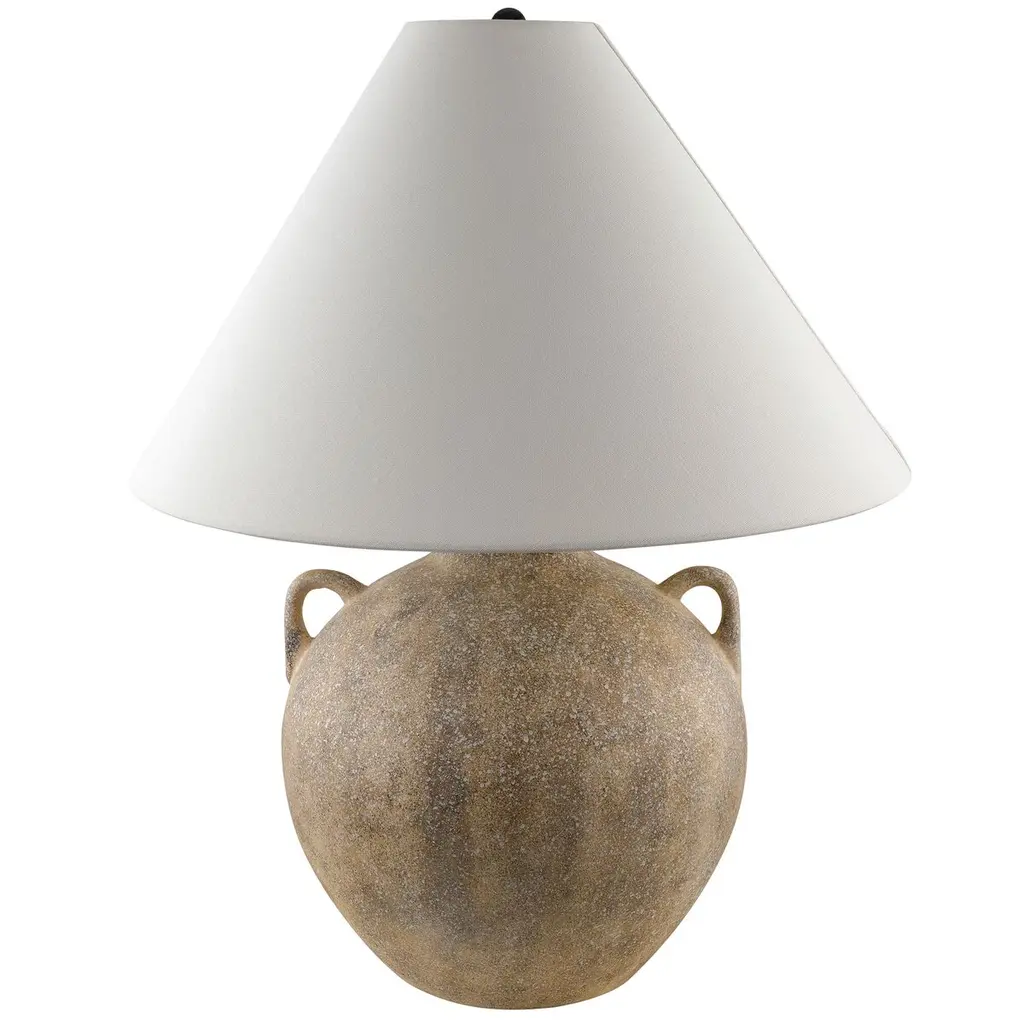 The Nivalis Table Lamp from Surya brings the unique texture of handcrafted ceramics to your home, with subtle variations that tell the story of its creation. The lamp's linen bell shade directs light both upward and outward, perfect for reading corners or conversation areas. You'll find the simple on/off switch refreshingly straightforward. Behind the scenes, a sturdy polystyrene interior gives the shade lasting durability, while the iron finial adds just the right finishing touch. This lamp feels right at home on bedside tables, entryway consoles, or living room end tables, where thoughtful lighting can elevate your daily routines.