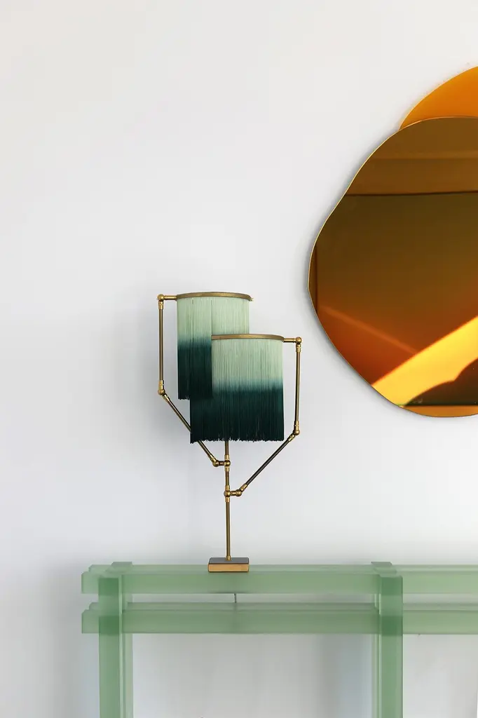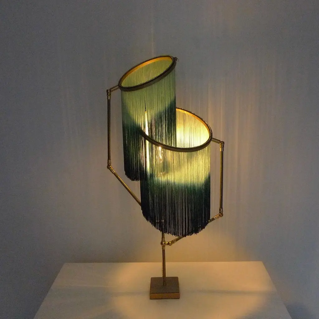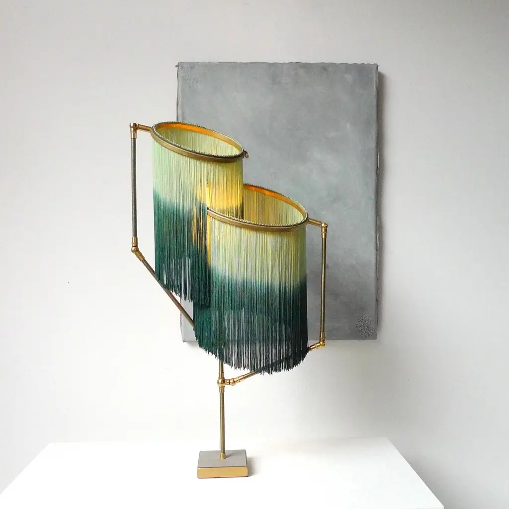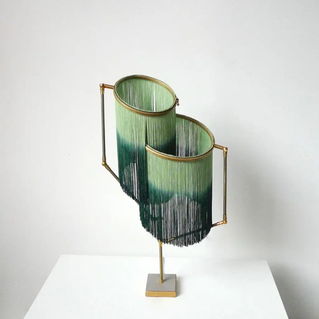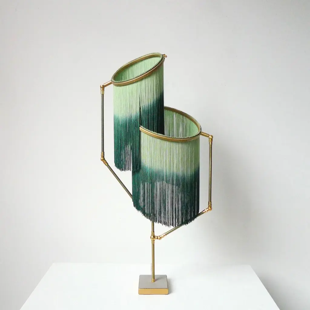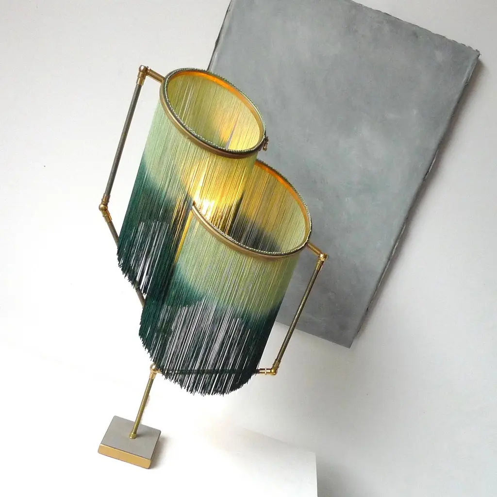 No. 21 Green Fringes Dip Dyed Contemporary Art Table Lamp By Sander Bottinga