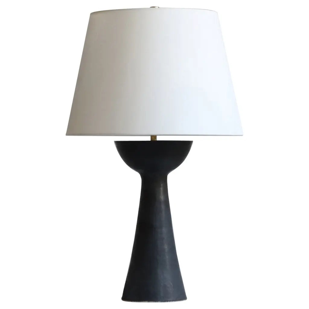 A striking rendition of geometric minimalism, Noemi by designer Ian Fowler brings a sense of weightlessness to its sculptural form. Distilled to the simplest of shapes, the steel base rises dramatically upward, its conical silhouette subtly echoed by a tapered linen drum shade. SHOP THE ENTIRE COLLECTION