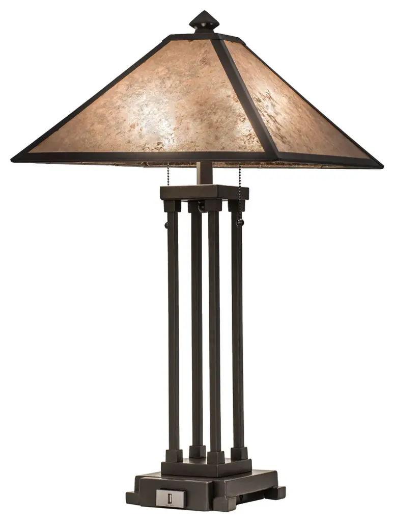 Durable Metal and Mica ConstructionCompressed Amber MicaShips in One CartonLittle to No Assembly RequiredPull Chain SwitchOn/Off Rocker Switch on Base