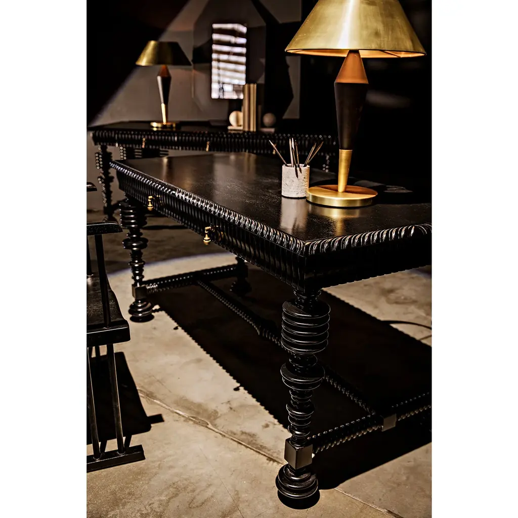 Noir Blau Table Lamp, Steel With Brass Finish And Black Steel Detail