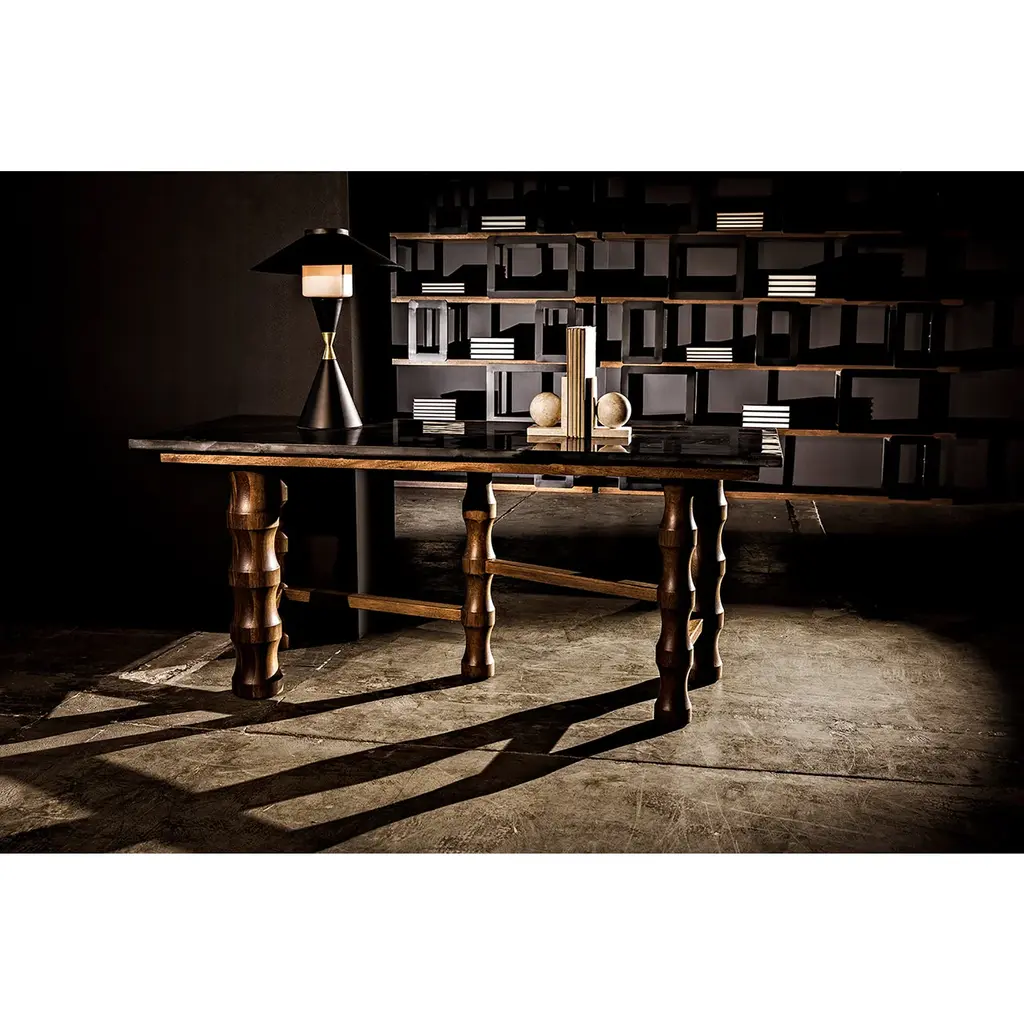 Noir Lucia Table Lamp, Black Steel With Mb Detail