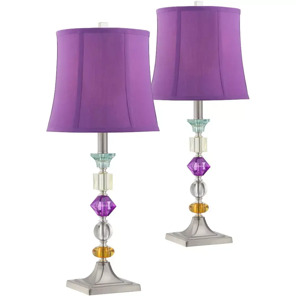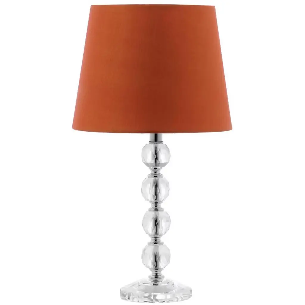 Illuminate your space with a touch of elegance with the NOLA crystal table lamp set. Each 16 inch lamp combines the stunning clarity of crystal with a vibrant orange shade, creating a captivating focal point for any room. The clear and orange design effortlessly blends modern style with a warm, inviting glow. These lamps are not just lighting solutions; they are pieces of art that enhance your decor. When placed on a side table or desk, they add a sophisticated accent to your home or office. The blend of clear crystal and orange fabric shades complements both contemporary and traditional settings. The NOLA lamp set of two offers versatile placement options, perfect for bookending a sofa or as bedside lamps. Let them stand solo or pair them with your favorite home accessories to create a harmonious ambiance. Transform your living space with these striking and functional additions.