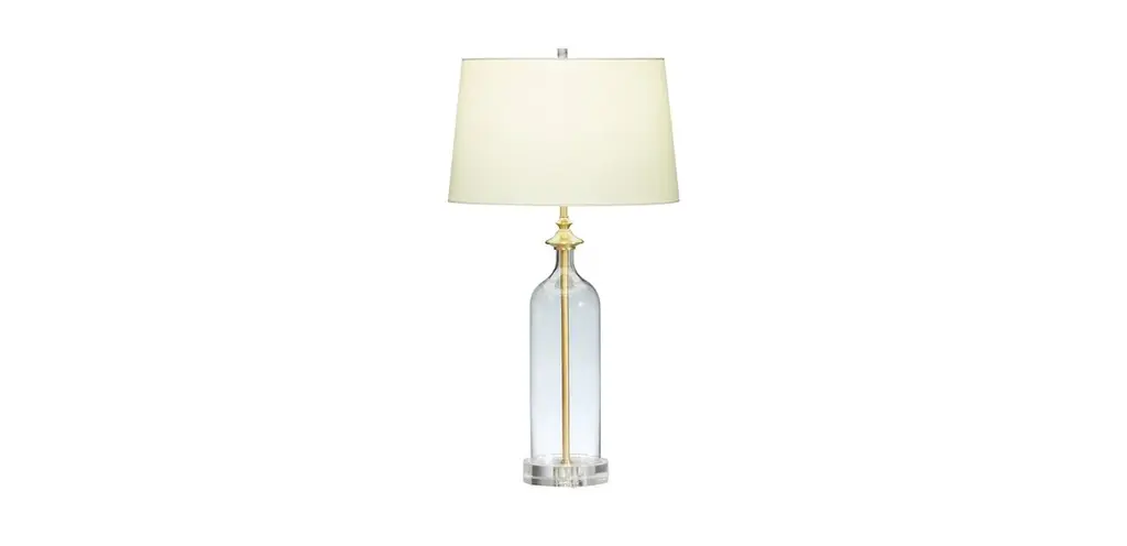 Inspired by our farmhouse chic clear glass Nolan table lamp, this slender sibling is the perfect side for small night tables, desks, and more. Each lamp is mouth-blown, seated on an acrylic base, and fitted with either an antiqued brass or polished nickel collar and wiring rod. The nickel version of the Nolan is also finished with a mercury glass base.