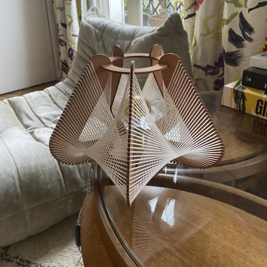 The Notoca Table Lamp from LaFabLight brings a cozy, Nordic touch with its soft cotton braiding wrapped around a sleek trapeze-shaped wooden frame. Resting on a beautiful brass and wood base, this table lamp adds gentle, atmospheric light to any room, whether it's a living room, bedroom, or reading nook. Each lamp is carefully assembled and hand-braided to order in France, imbuing it with a personal, handcrafted charm that makes it truly special.