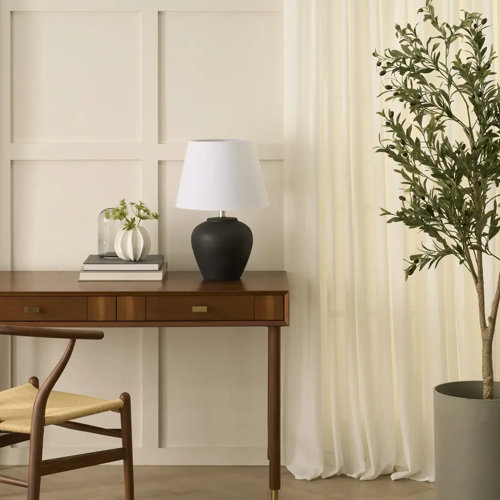 Nourison 20" Rustic Ceramic Pot Table Lamp - Black