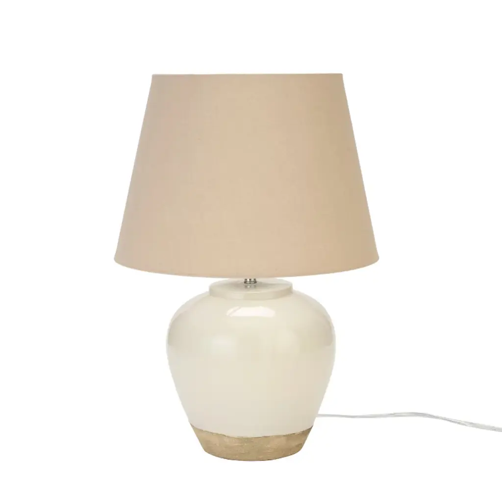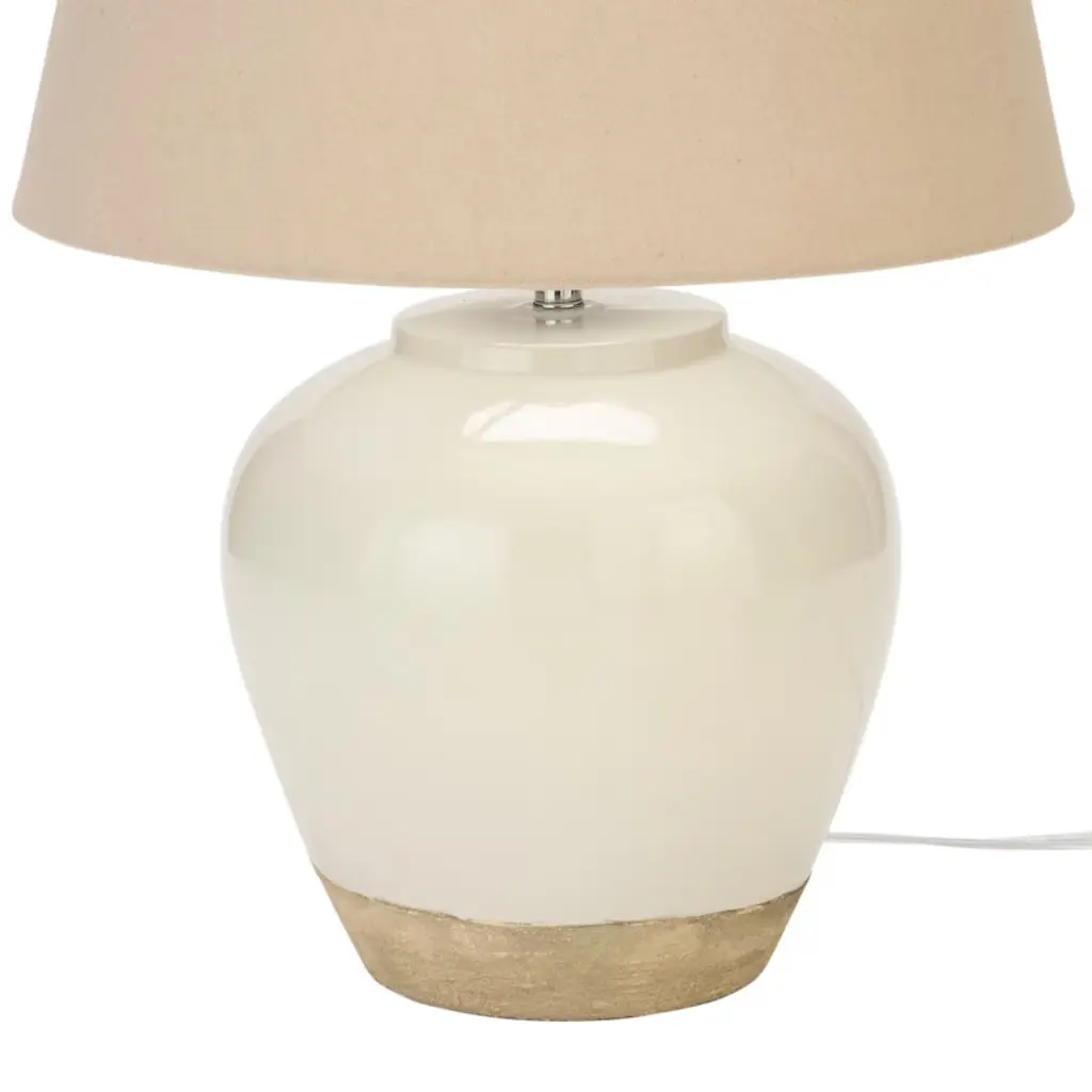A seamless blend of contemporary design with vintage appeal. Its rounded ceramic base, boasting a soft rustic finish, is complemented by a natural shade that diffuses soft warm glow. Whether styling a minimalist bedroom or a chic living room, this lamp is sure to enhance any setting with its timeless appeal.