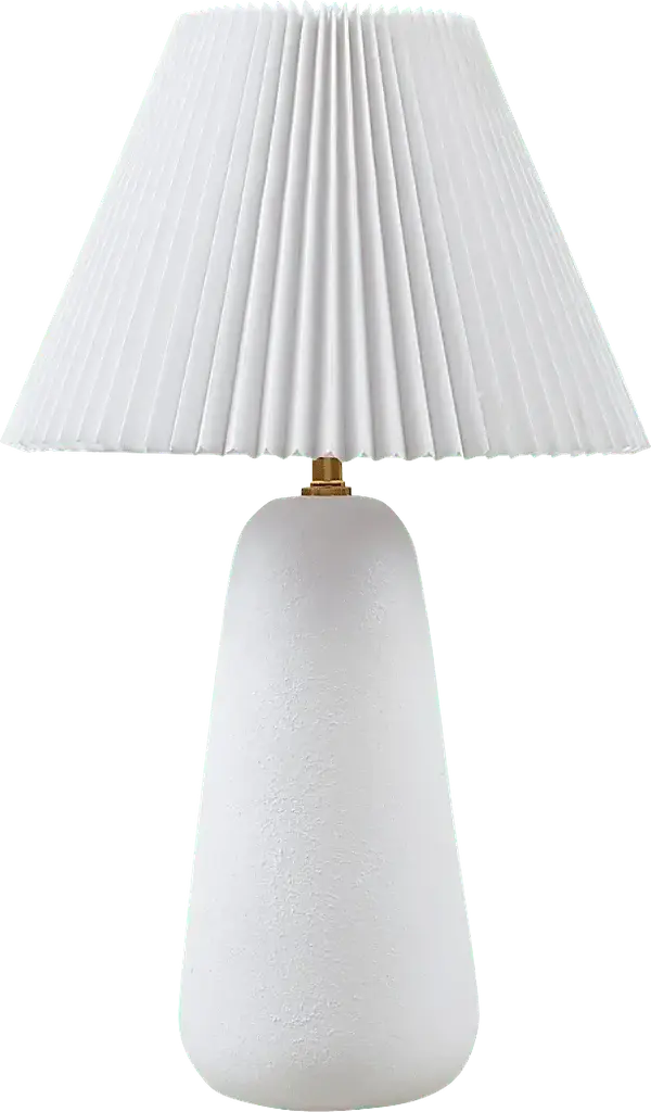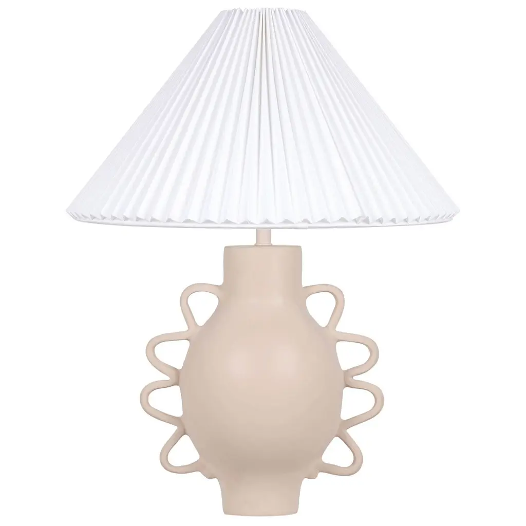 Introduce some whimsy to your space with the Nova Pleated Table Lamp. Crafted with a biomorphic surface texture from hand-formed fiberglass and a pleated lampshade, this lamp is a unique fusion of artistry and functionality. Whether you're completing a maximalist setting or seeking a statement piece for a wabi-sabi neutral space, the Nova lamp effortlessly adds personality and charm to any room.