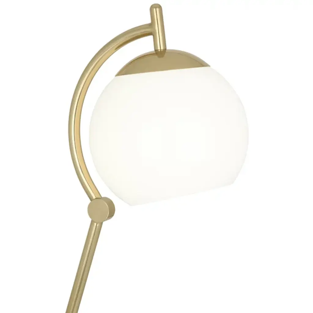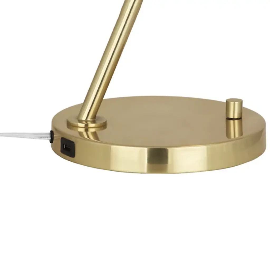 The Nova Table Lamp by Robert Abbey is a petite lamp with astronomical charm. Artistically designed with an Art Deco flair, its rounded steel base supports an angled stem that reaches a joint-like point then curves to yield to its spherical shade. Made of frosted glass, the low luster shade diffuses the warm light that glows from an incandescent bulb inside. This lamp features a base switch and USB port for a fixture that is stylish and smart.