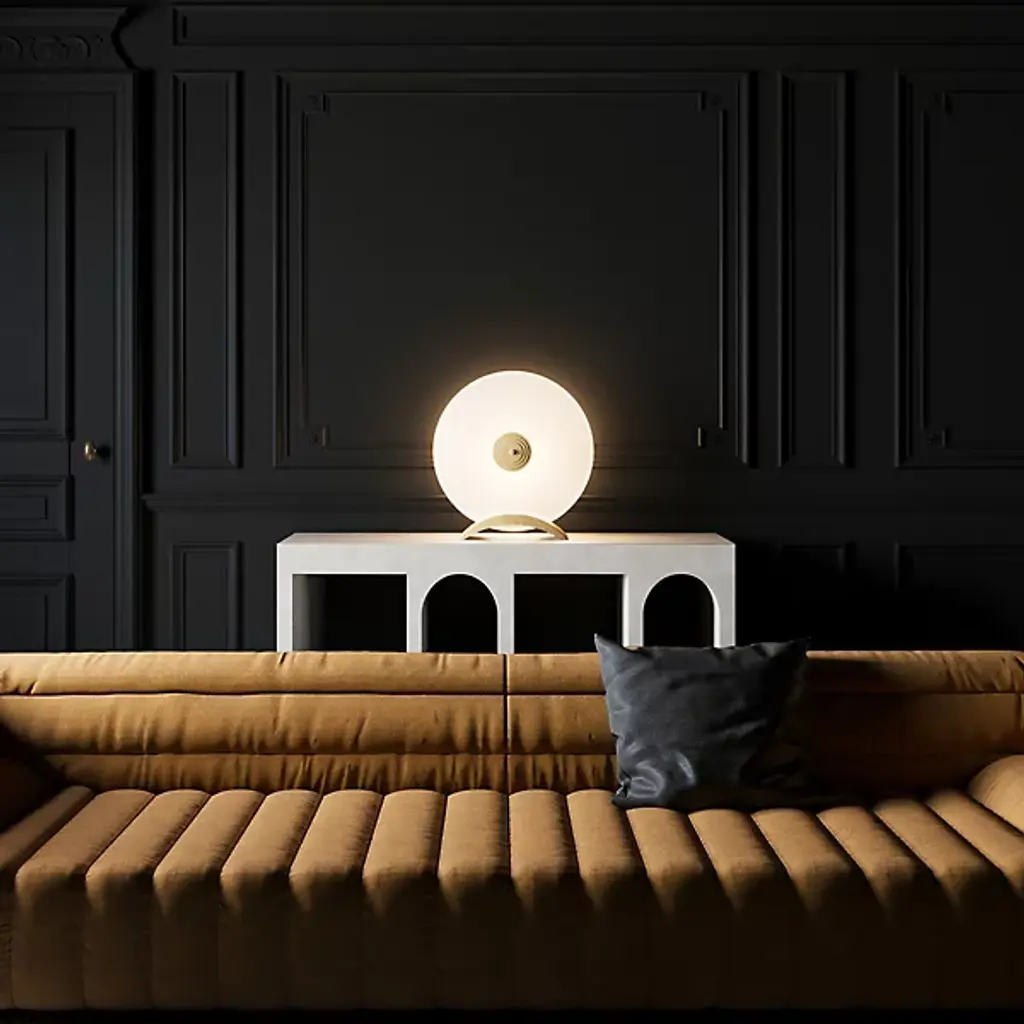 Illuminate your bedroom with the Nova Table Lamp from J. Adams & Co. A beautiful matte opal glass shade is formed into the shape of a globe, which gives the light its iris quality. From within, the shade diffuses soft LED light. Brass serves as the primary material for the globe’s central, circular adornment. A base plate crafted into a dainty arch formation ensures that the light is held in place while your tabletop stays protected.