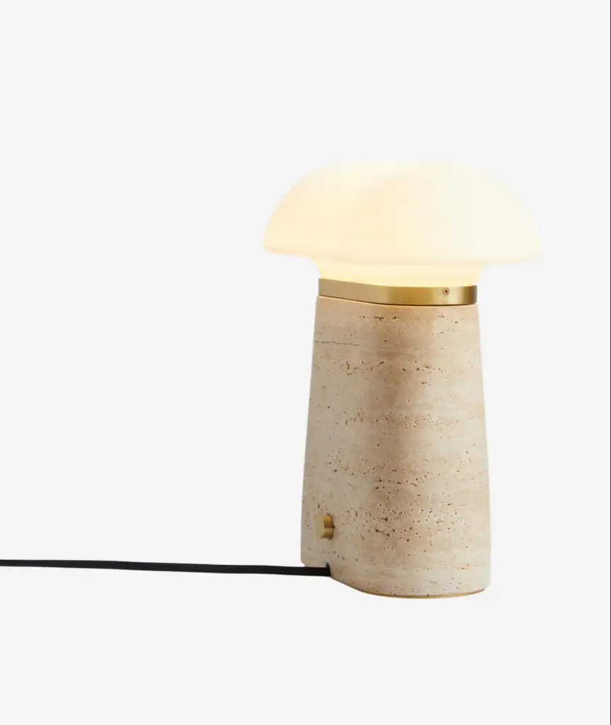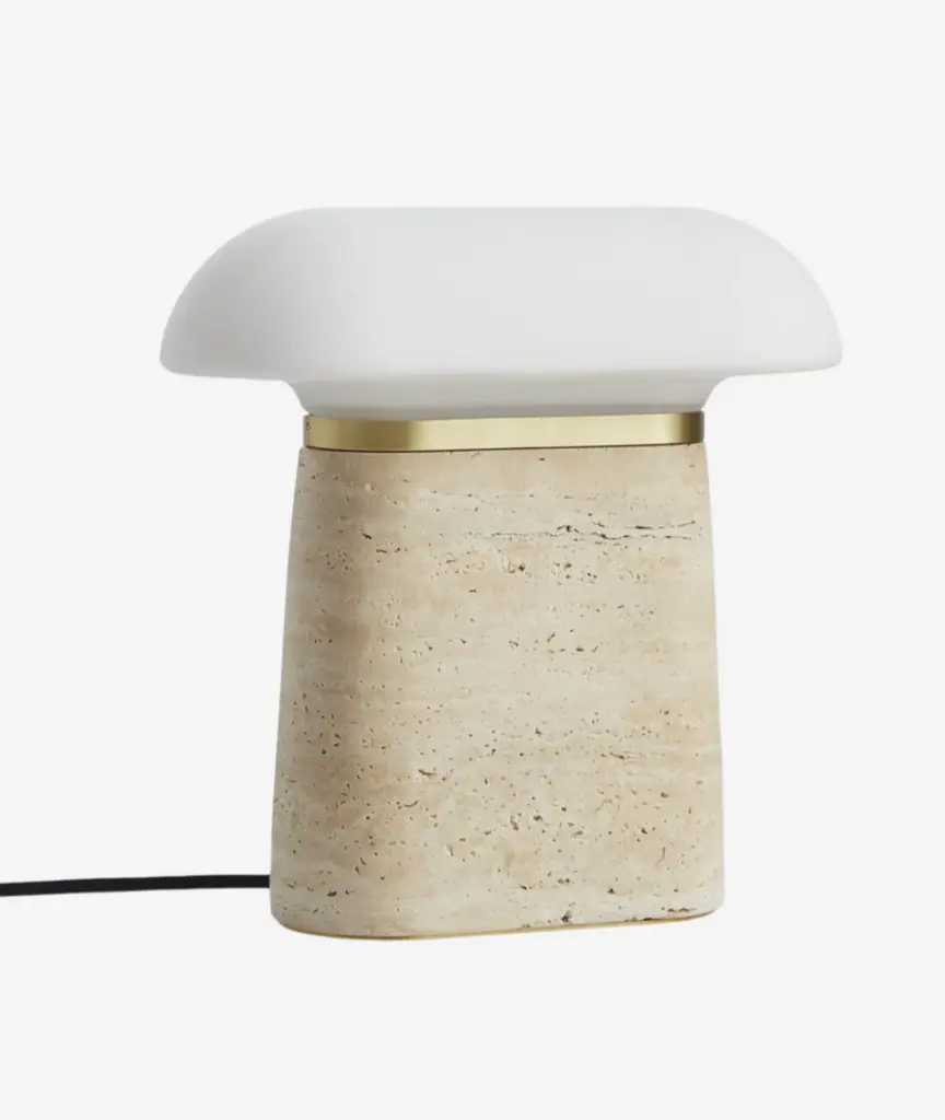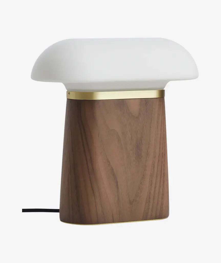 Nova is a decorative and sculptural table lamp. The rounded, airy glass shade seamlessly flows into a solid, refined core that widens towards the base. Balancing the aesthetics of delicate glass with natural, robust materials. The sleek brass element elegantly connects the shade and base into a visually well-proportioned symphony.