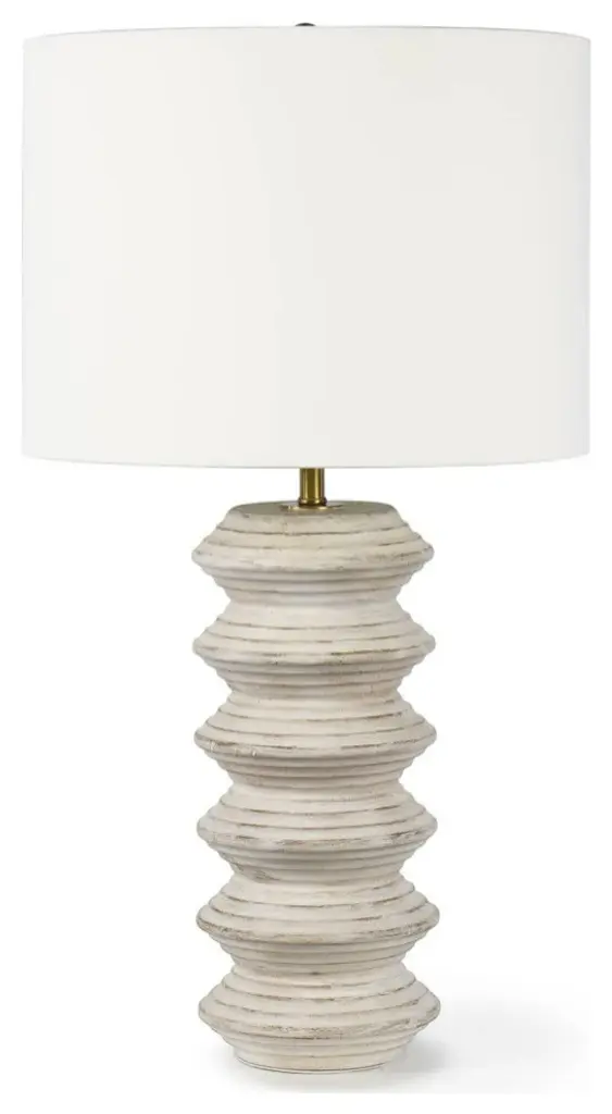 Like sun aged driftwood, the Nova Lamp''s white-washed wooden body is the perfect piece of coastal-inspired lighting. Place the Nova in a relaxed living room, bedroom or entryway for a bit of sculptural impact. Light distressing accentuates Nova''s signature carved ridge detailing and a classic, natural linen drum shade with natural brass ball finial completes the look.Bulb Type: A Type Medium Base (E26)Wattage: 3-Way 150 Watt MaxNumber of Bulbs Needed: 1Bulb Included: No