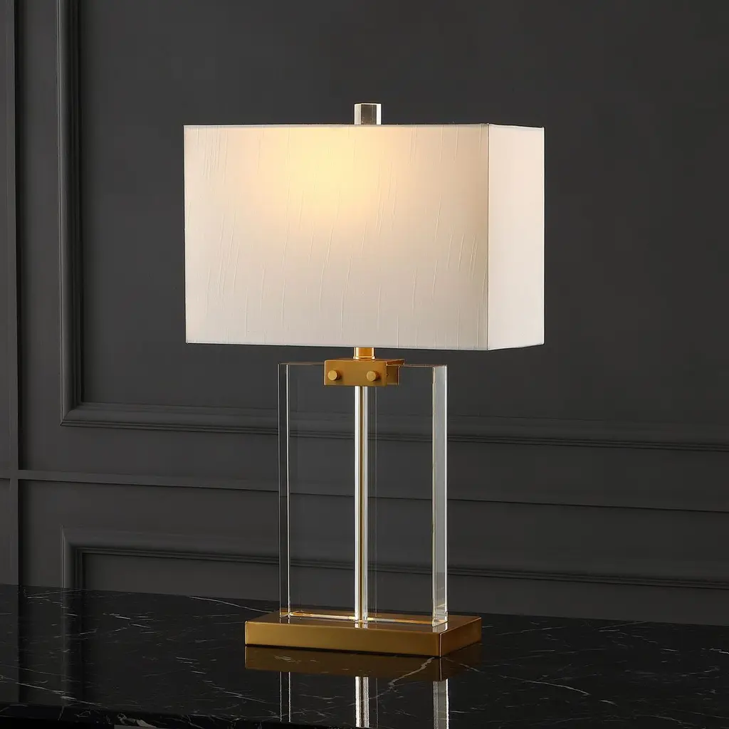Art Deco redefined for today's contemporary interiors, this handmade Novanir Table Lamp is absolutely spellbinding. Novanir's statuesque crystal body and finial are given a hint of industrial chic with a gold plinth base and matching decorative hardware.