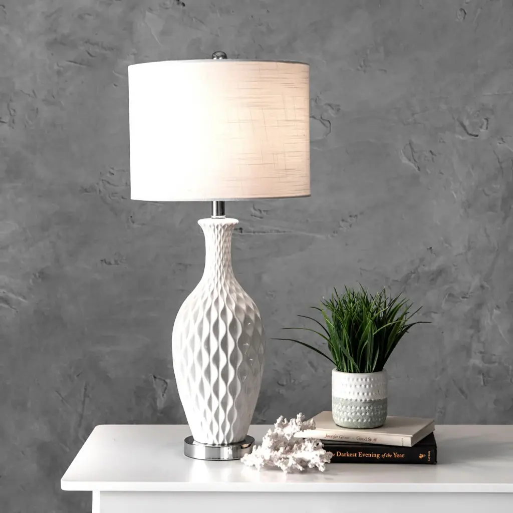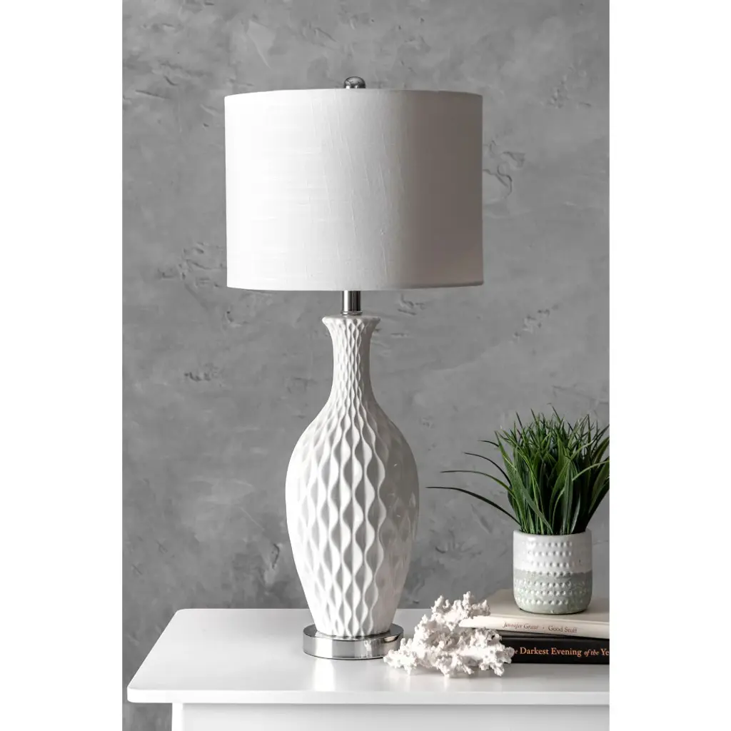 Nuloom 28" Diamante Textured Ceramic Table Lamp, Linen Shade Ivory