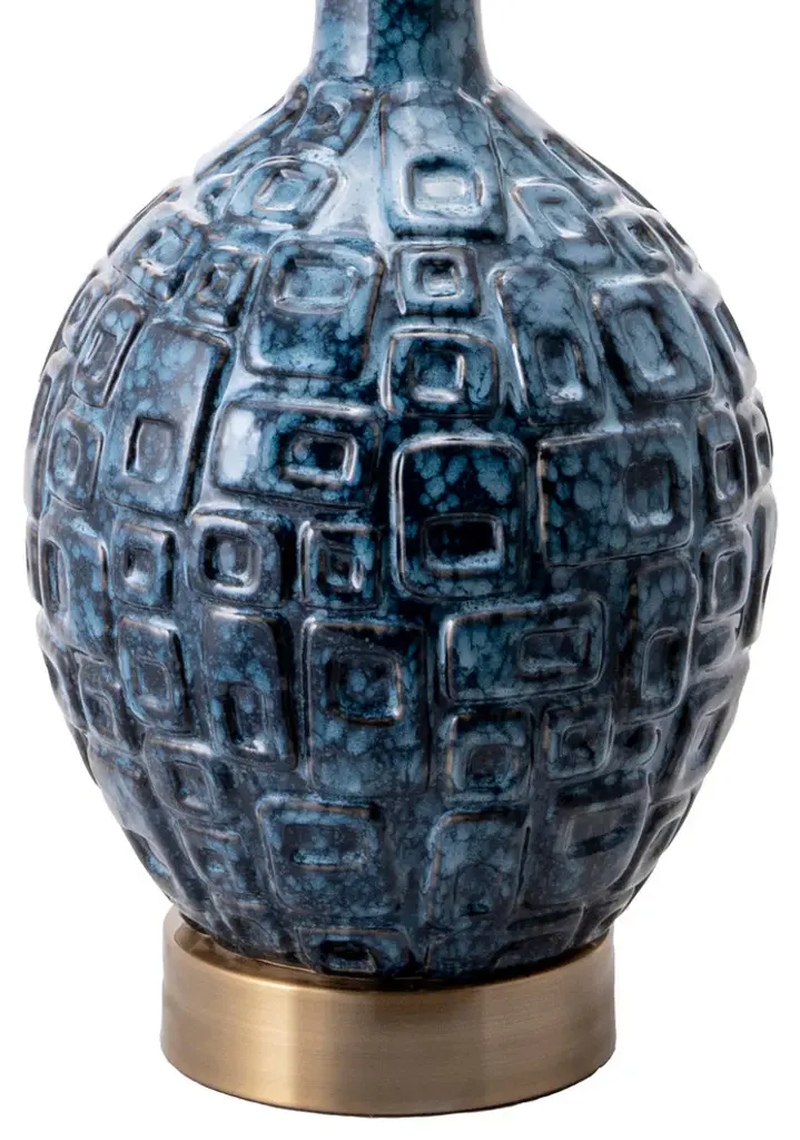 Nuloom 28" Tegular Ceramic Flask Linen Shade Blue, 3-Way Switch Table Lamp
