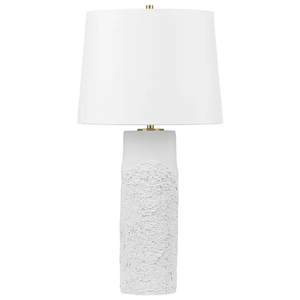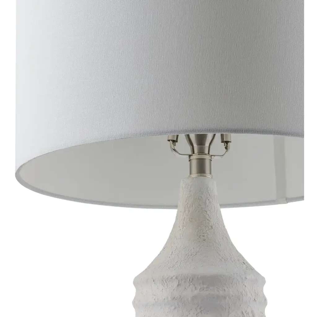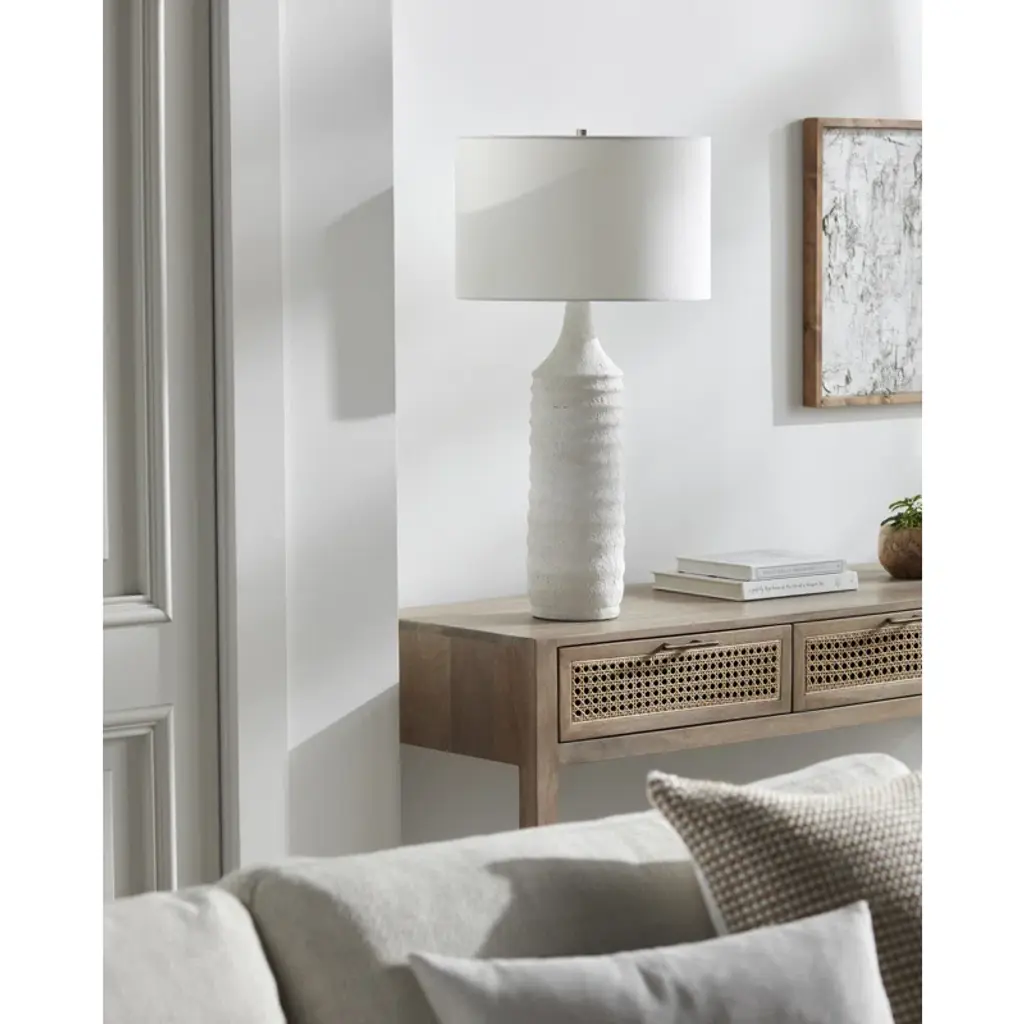 This lamp brings a touch of country cottage style to any home. The body is made of cement and metal, giving it a rustic look that will last for years to come. The cotton lampshade adds a cozy feel while providing even light distribution throughout the room. For easy maintenance, avoid harsh cleaners as they may damage the finish. This timeless piece is sure to be an eye-catching addition to your living space!