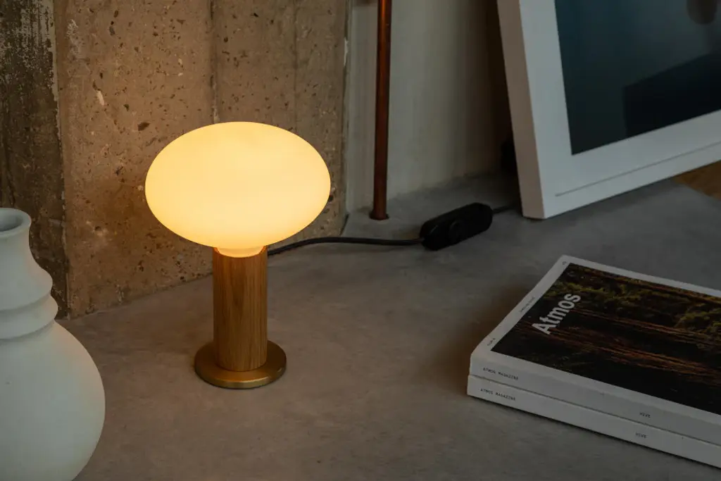 Tala''s newly launched Knuckle Table Lamps are carefully constructed from responsibly sourced materials and fitted with a highly responsive in-line dimmer, allowing you to adjust the ambience of the light to match atmosphere of your space. In Oak wood finish and complemented by a plated brass base and black silicon cable. Oak finish Polished brass base In-line dimmer 9.8ft cord Perfect dimming from