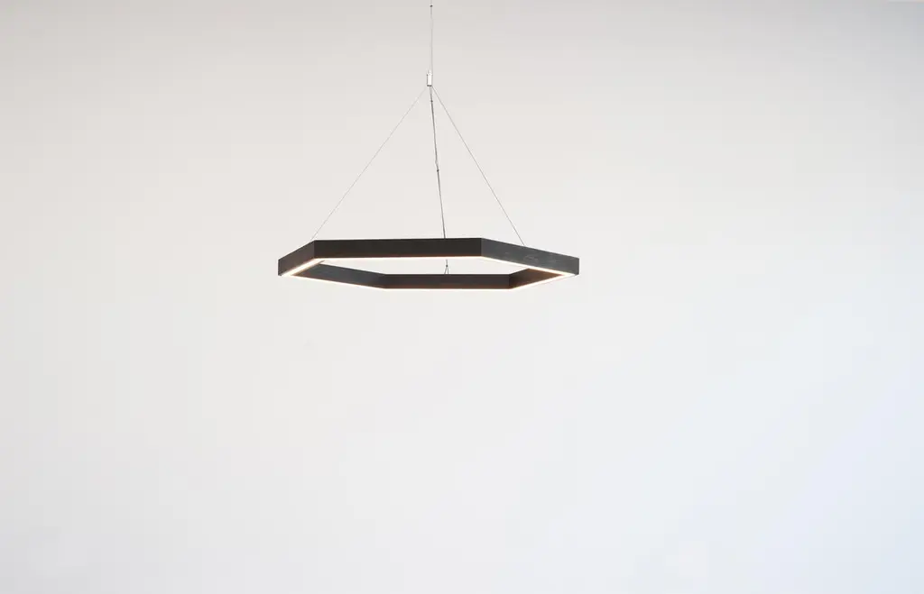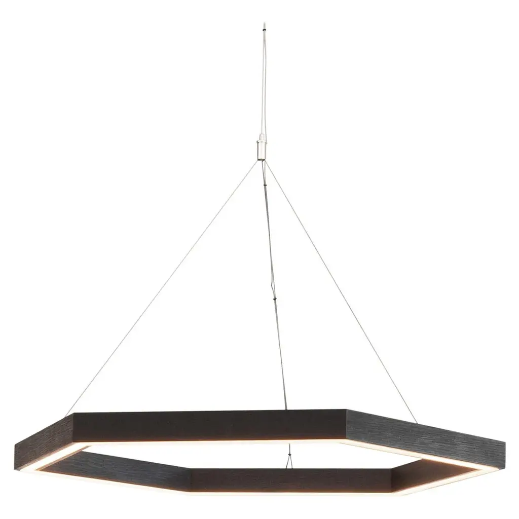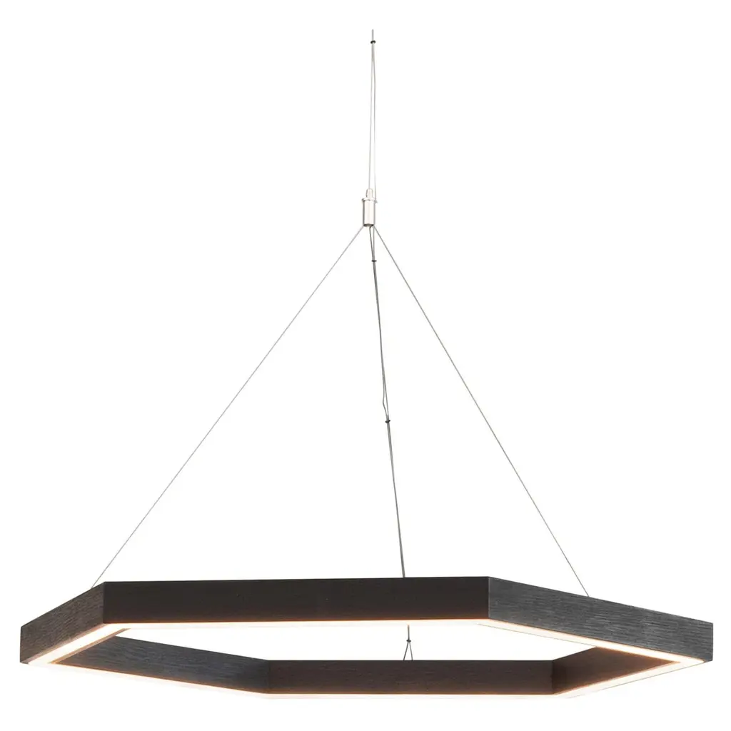 Oak small hexagon chandelier by Hollis & MorrisDimensions: 32" x 27.75"Materials: Solid wood, Hardwax Oil. LED lights. Suspension Hardware. Also available in Natural Oak, Black Oak, White Oak, and Walnut. Please contact us for more information. All our lamps can be wired according to each country. If sold to the USA it will be wired for the USA for instance.Celebrating the ordered beauty and iconic shape of a beehive honeycomb. The chandelier's more substantive solid wood frame supports its grander scale and lends to its striking yet whimsical presence.Based out of Toronto, Hollis & Morris takes its name from an intersection in Halifax where the company started as a series of garage explorations in design. A steadfast commitment to function with a distinctive approach to design. Hollis & Morris creates handmade furniture and lighting which carefully balances modern and honest designs. Versatile, well crafted, and timeless. Pieces by Hollis & Morris easily complement residential, commercial, and hospitality spaces. Driven by respect towards natural and honest processes, trademark integrations of solid wood and metal celebrate the inherent strengths of each material, resulting in thoughtful, quality pieces made to last with you throughout the years.