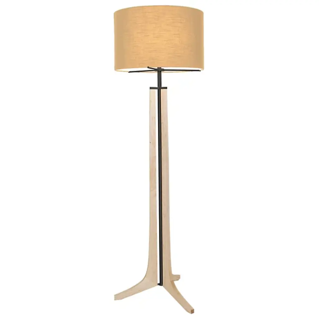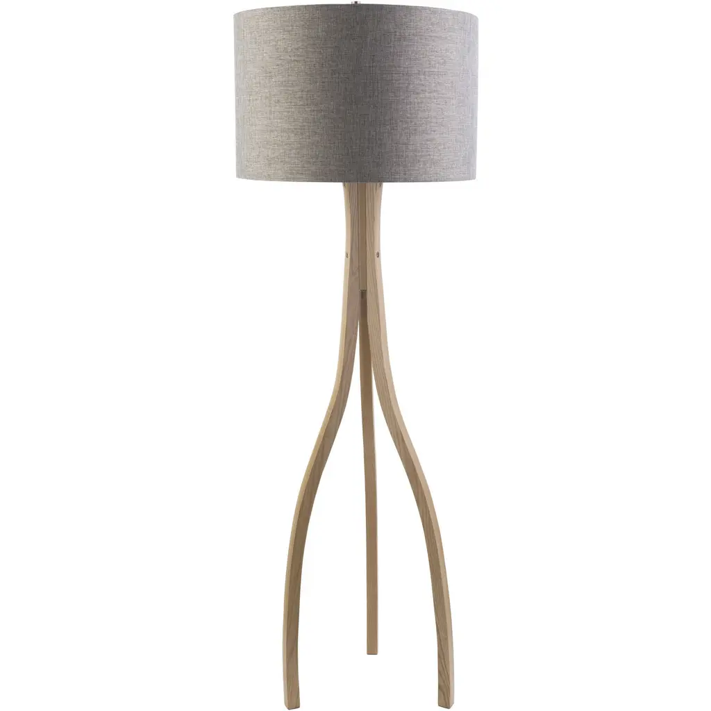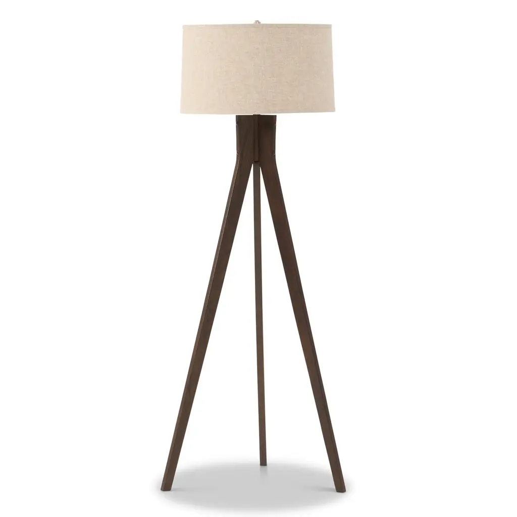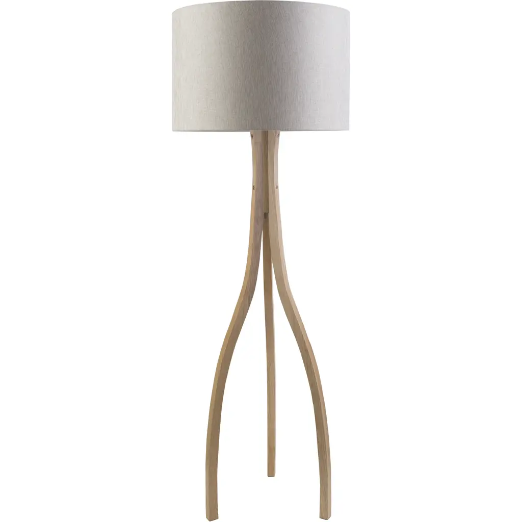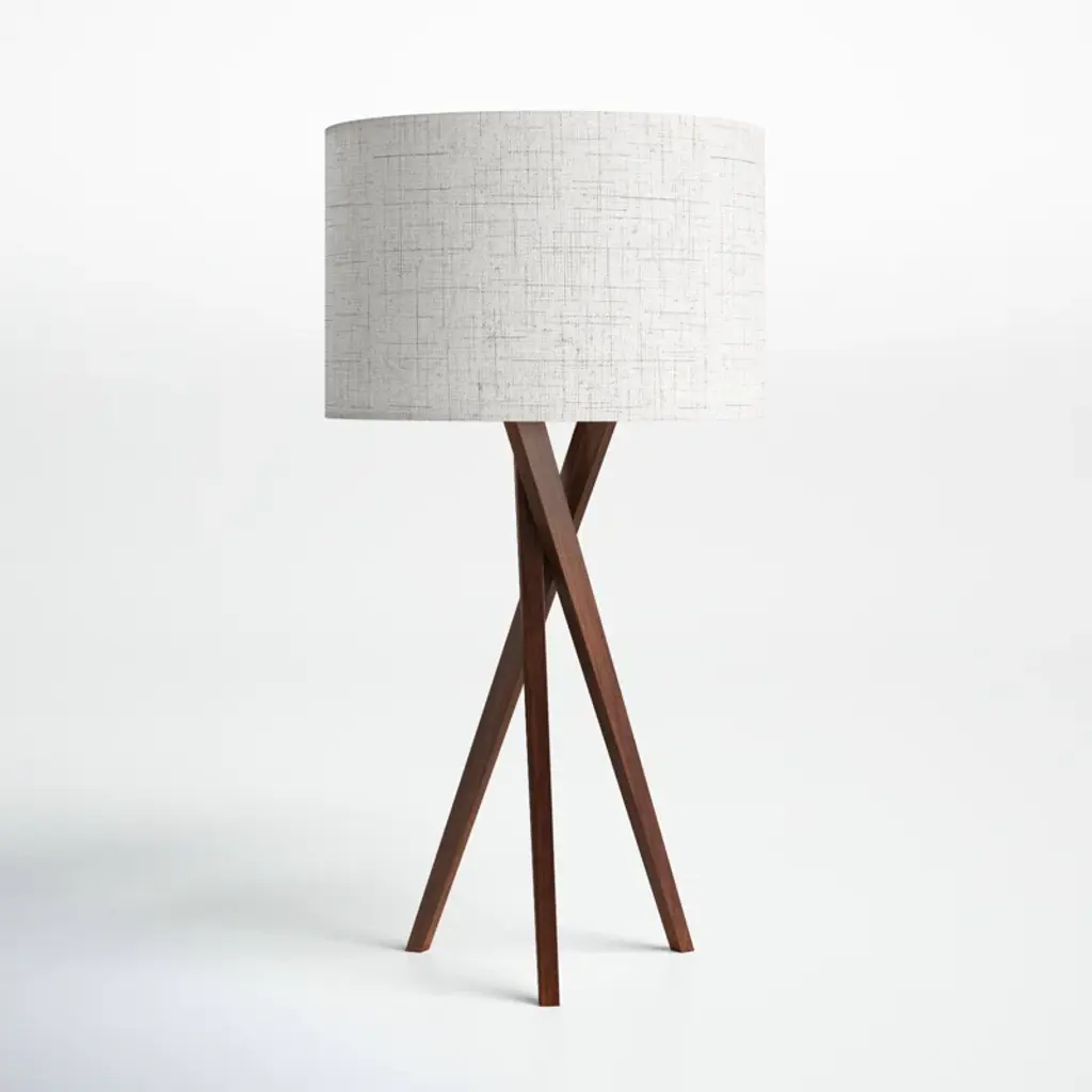The chic Lynnette table lamp combines mid-century-style flair with rustic natural materials to stylish and angular effect. Its natural oak-veneer tripod legs are a sharp contrast to the linen drum shade's off-white hue. Featuring a three-way switch for custom light settings, this unique lamp is a versatile accent for any room.