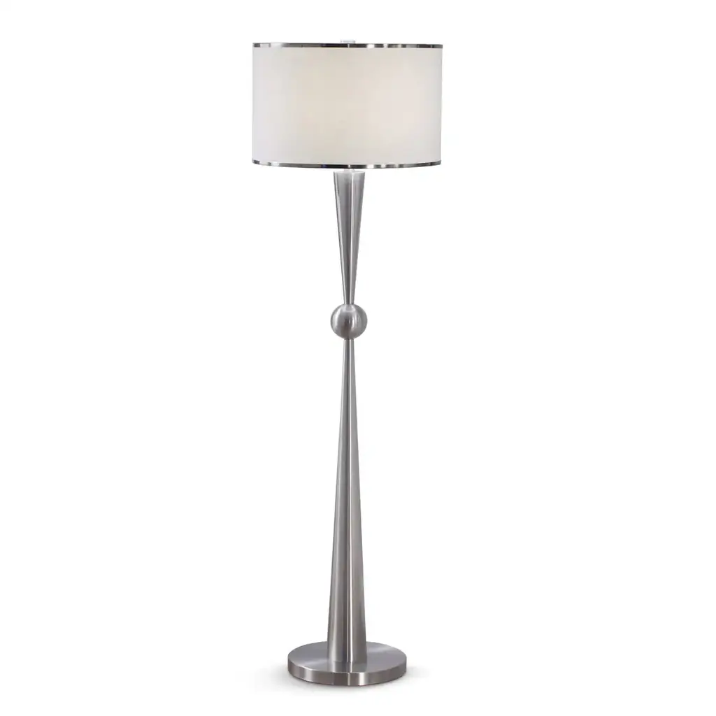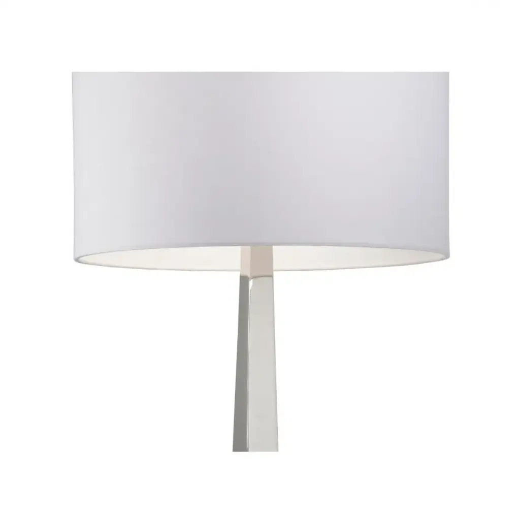ILLUMINATE YOUR HOME OR OFFICE WITH THIS TRANSITIONAL TABLE LAMP THAT OFFERS A MINIMALIST DESIGN YET PROVIDES MAXIMUN BEAUTY AND FUNCTION. THIS 44" HIGH GLOSS NICKEL LAMP REFLECTS LIGHT FROM UNDER THE ELEGANT, WHITE LINEN DRUM SHADE, FILLING THE SPACE IN AN OPEN FOYER, MASTER SUITE OR GREAT ROOM.