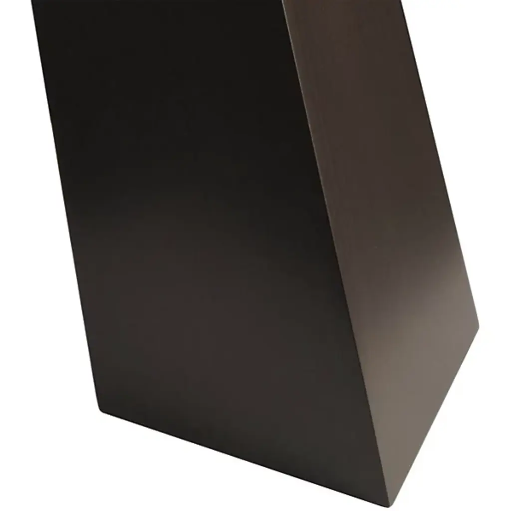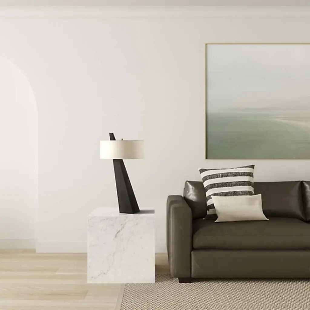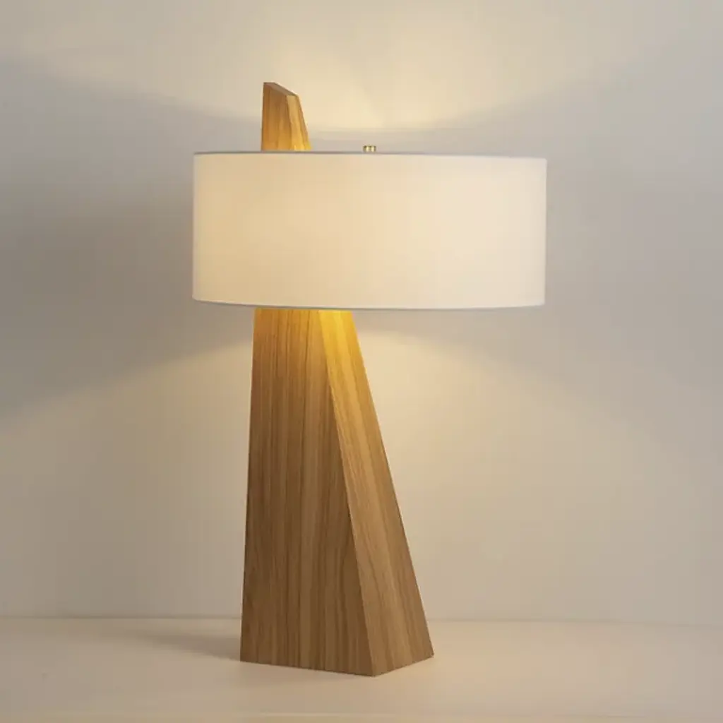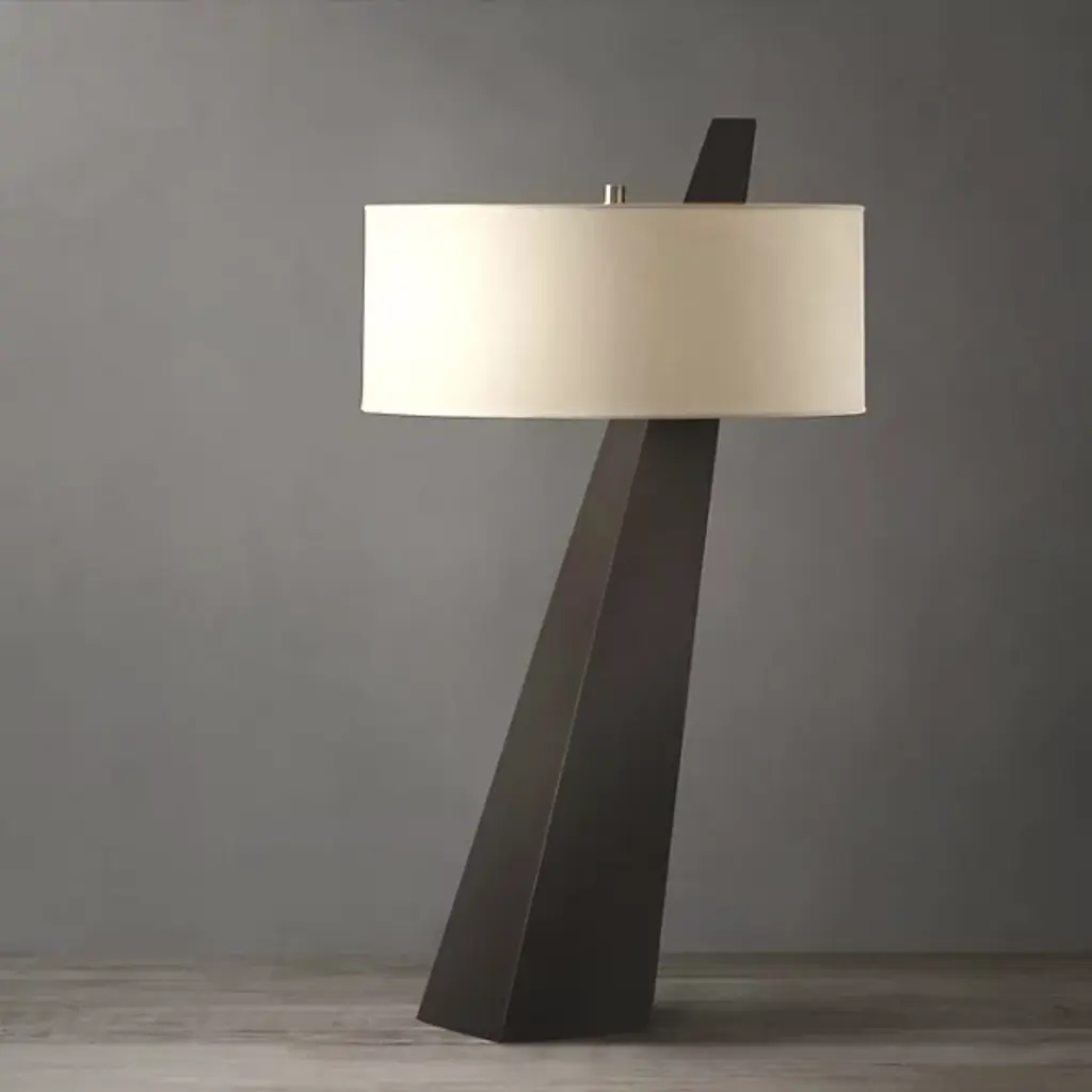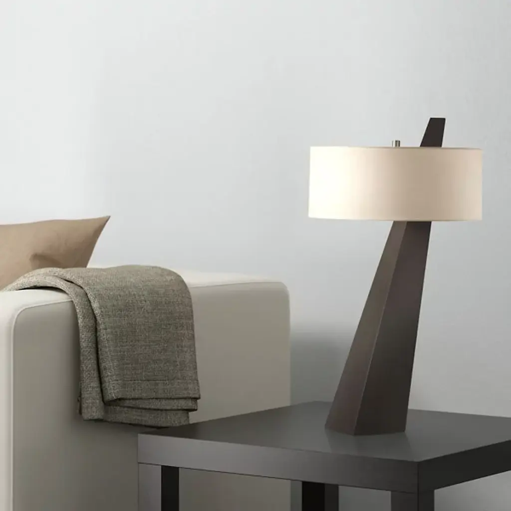 A landmark in the modern space. The Obelisk Table Lamp from Nova of California provides decoration and illumination with simple splendor. It sets itself apart from the straight lines of the home's architecture with a leaning body. The dynamic MDF structure guides the eye like an arrow to the rich light source above. Its linen shade feels soft and looks soft as it presents itself with a generous curve. The shade hides the bulb for a clean silhouette and a comfortable glare-free experience. When turned on, the piece generates a tasteful ambient light, illustrated as a warm glaze on the dashing body.