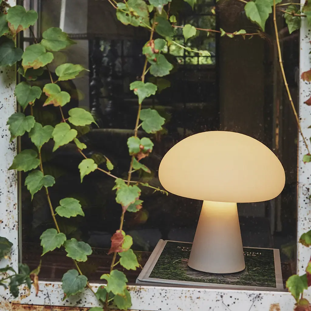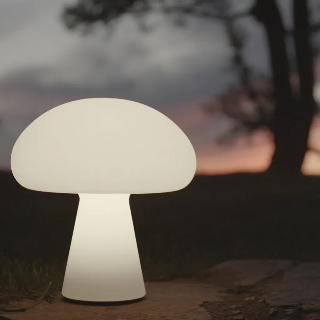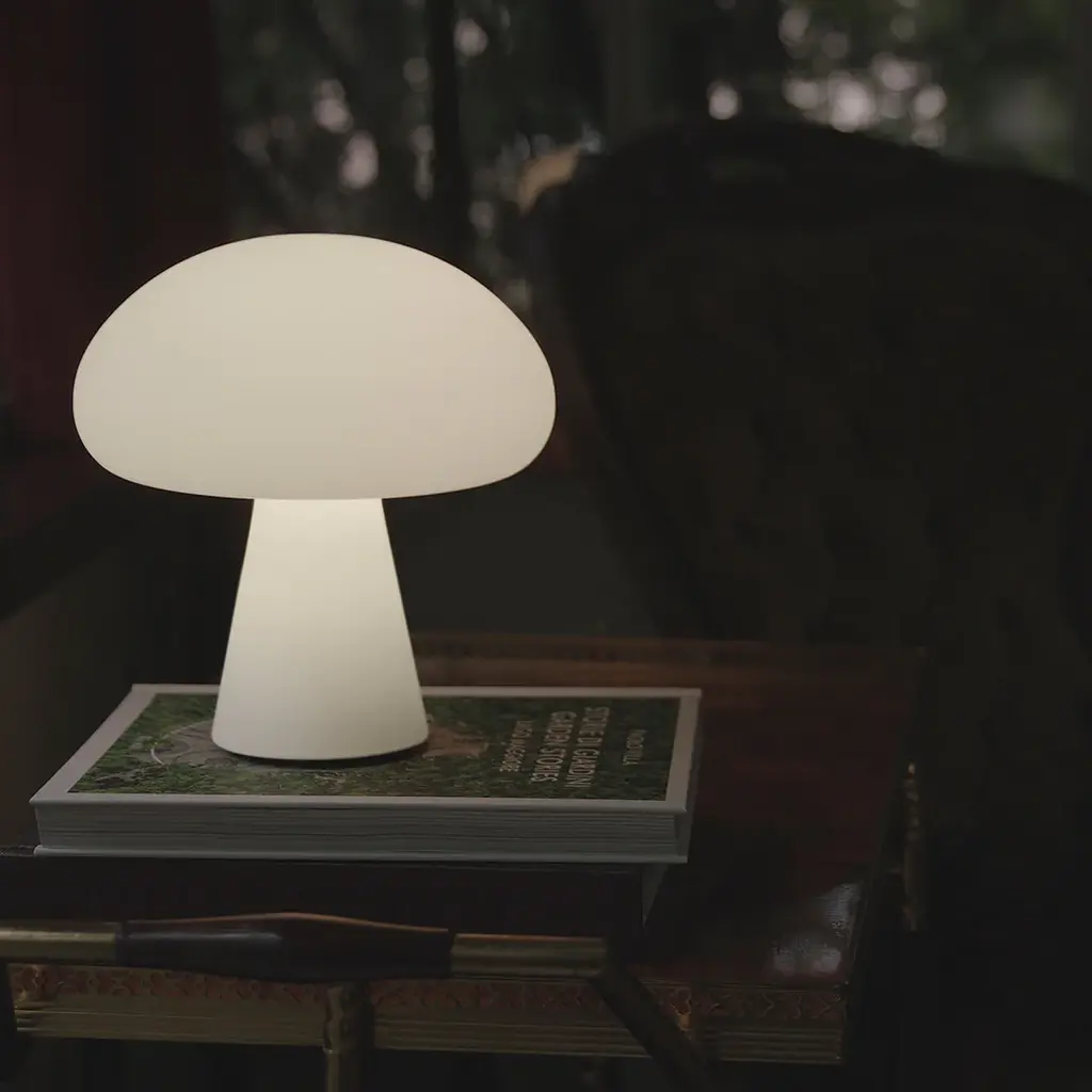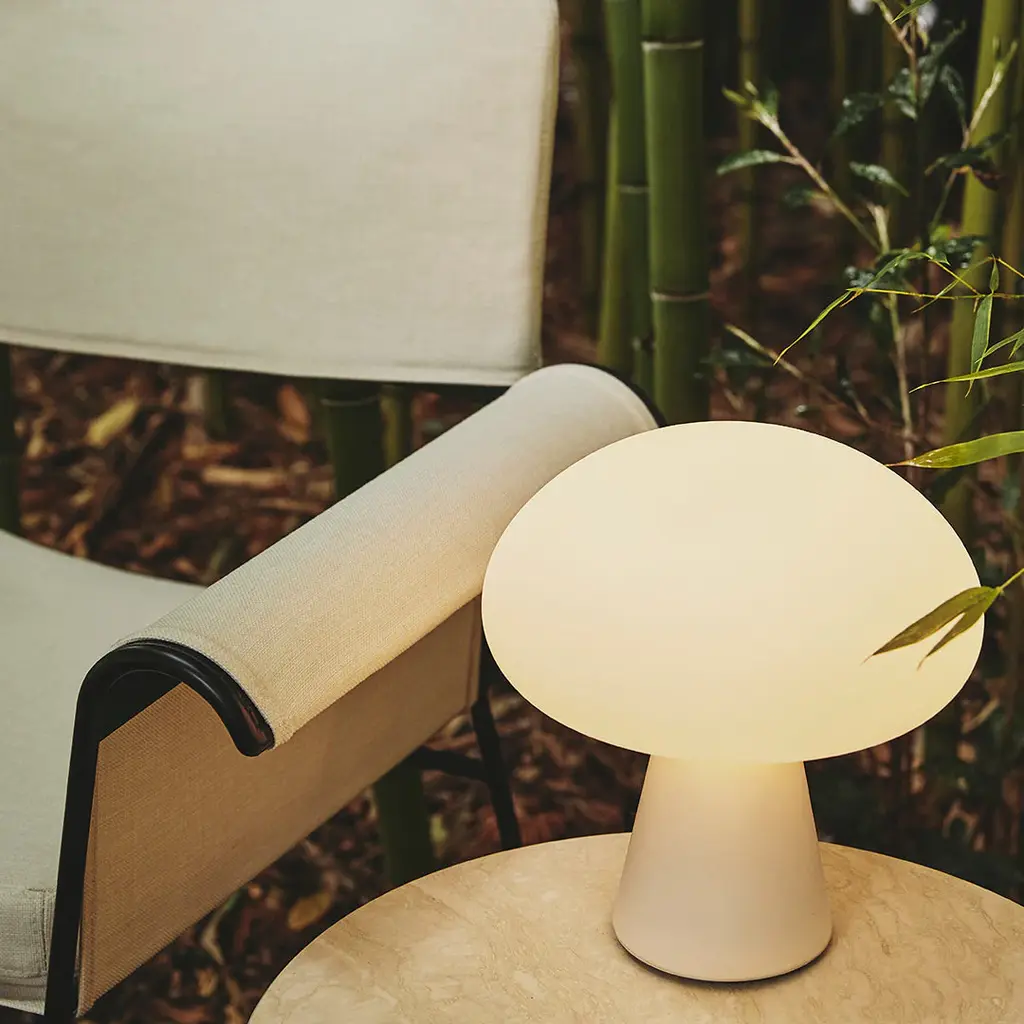 With a frosted, mouth-blown glass shade, as used for Curryâ€s original lamps, and integrated dimmable-LED light source, the rechargeable lamp can easily be moved between inside and out. With a complete charge in four and a half hours, providing up to 40 hours of light, Obello will create a cozy atmosphere as the sun starts to set and last well into the night. The Obello Lamp is an iconic space-age design that will make a strong statement, either as a playful centerpiece or a point of curiosity within any outdoor space.