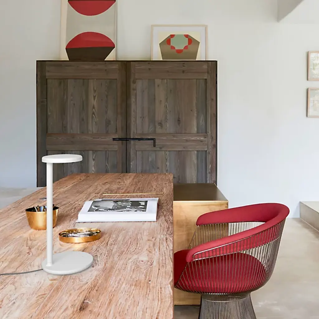 A piece designed to keep you and your devices charged up. Whether you’re relaxing on the sofa or focused at your desk, the Oblique LED Table Lamp from FLOS is your handsome and convenient companion. Vincent Van Duysen creates minimalist designs with a soul. Van Duysen approaches this table side piece like he does his architectural plans, calculated. Using a pair of circles and a slender stem, Van Duysen creates a clean, balanced composition that draws the eyes. The base could be a separate product on its own, providing wireless charging for your smart devices and a USB-C cable port, so you never have to make a mad dash to the nearest charger again. Sporting a 355° rotatable stem, the lamp head conceals its LED light for a comfortable glare-free experience. The LEDs pass through a patented diffuser lens for a pure spread of illumination.
