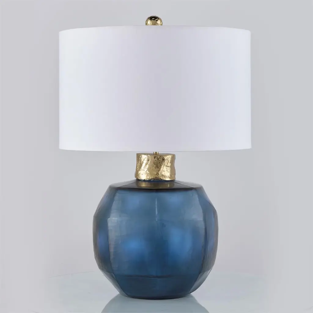 Illuminate your space with the exquisite Odilon Table Lamp, a stunning blend of artistry and elegance. The lamp features a captivating teal-gray glass base, adorned with mesmerizing Marisella of bold blue-ivory, creating a visual masterpiece. Complemented by brushed nickel details and a sturdy crystal foot, this lamp exudes sophistication. Topping it off is a round hardback drum shade crafted from light beige linen fabric, offering a soft, ambient glow. The Odilon Table Lamp is a perfect addition to any room, bringing both style and functionality to your decor.