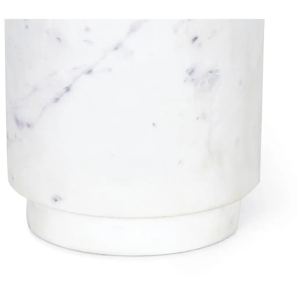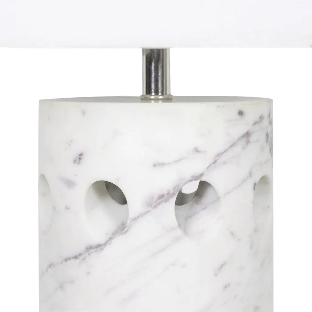 Set in dramatic white marble with purple veining that gives a sense of movement, the Odin table lamp features a modern design set with organic materials. The sleek silhouette is accented by a series of angled apertures along the top that gives a peek into the depth and thickness of the marble design.