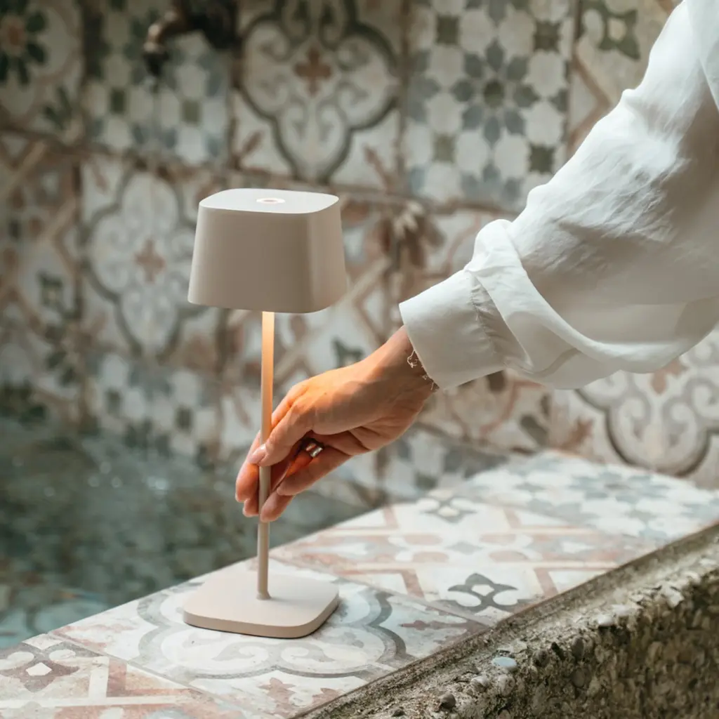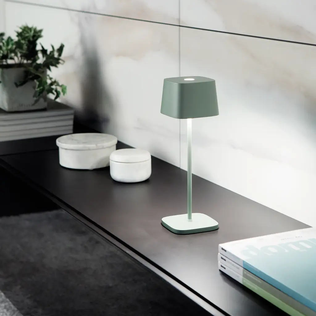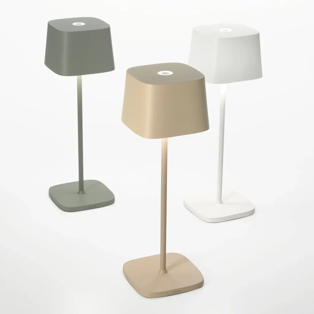 Ready to bring sleek, compact style to your contemporary home, the Ofelia Portable Table Lamp from Zafferano offers a portable, rechargeable design for an effortless touch of brightness. Easy to recharge and move about your space, this table lamp is perfect for bedside nightstands, living room end tables, or office desktops. Highlights