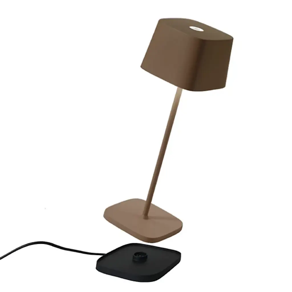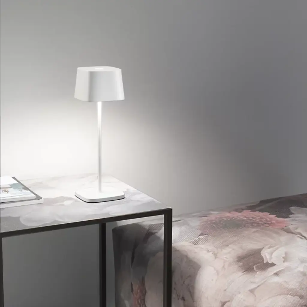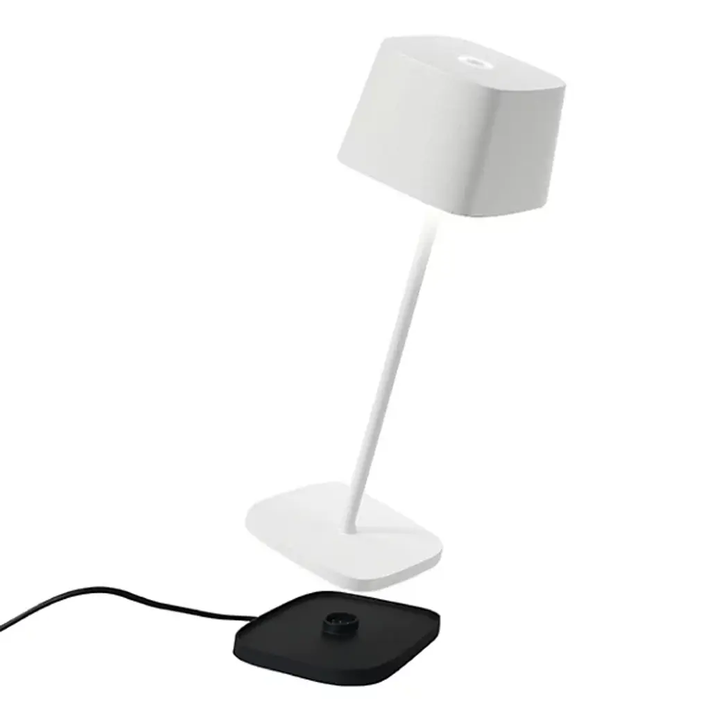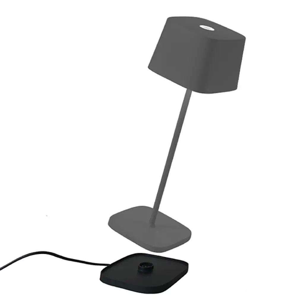 The Ofelia Rechargeable LED Table Lamp by Zafferano America is a compact, contemporary design that lets you bring some light wherever you need it, indoors or out. Connecting to an induction charging base with ease, this lamp can offer about nine hours of light once full, making it a great companion for outdoor dining or a cool workspace. A touch dimmer makes it easy to set the mood, and the simple, painted die-cast aluminum build is sturdy and will pair perfectly with a range of spaces and design styles.