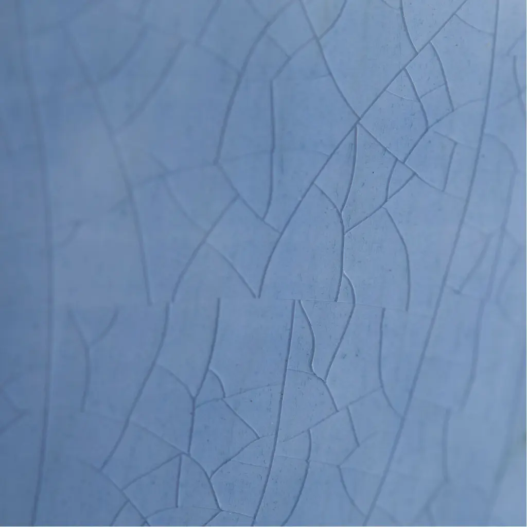 The rich textures in this porcelain lamp are created by hand and skill of artisan potters. After the porcelain is formed they take small clay combs and create all the etchings which is why up close you’ll notice slight organic details. The provincial blue glaze only adds to the textures and has a slight crackling where etchings are absent. Topped with a drum shade in white linen with cotton lining and an acrylic ball finial. Glaze finish may vary.
