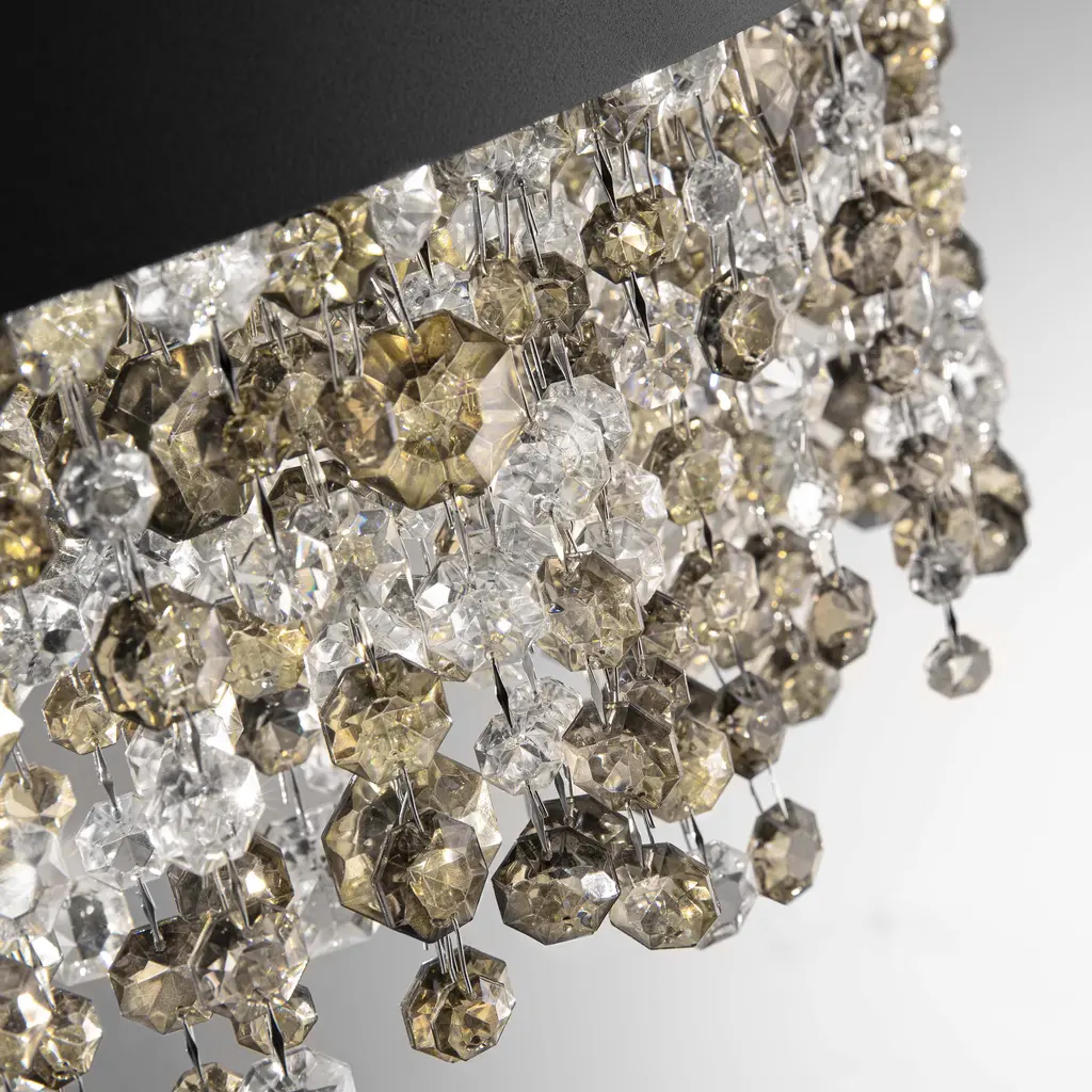 Bring jewel-like beauty to your space with the elegant Ola Table Lamp from Masiero. Its open-air powder-coated metal frame showcases cascading Italian glass gems, available in four finishes. Each finish boasts a unique colored gem assortment, while the specific colored power cord adds a coordinating touch. With an inline on/off switch, Ola offers both style and convenience. Highlights