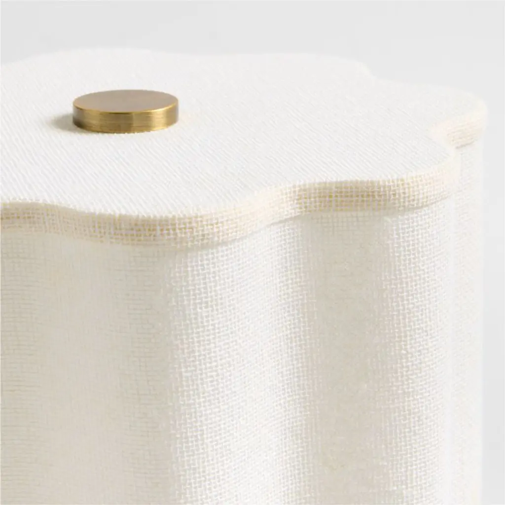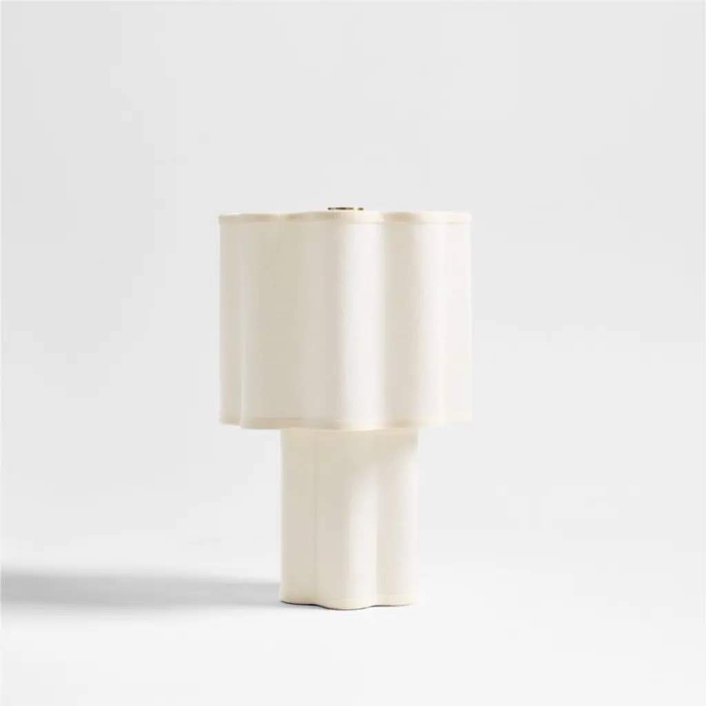 Inspired by vintage lamps and shades, our Ola table lamp offers a contemporary take on a scalloped silhouette. The lamp's sculptural curves are covered in warm white fabric and echoed in the matching shade. The rounded contours offer a continuous play of shadow and highlight whether the lights are on or off. This table lamp is perfectly proportioned for a nightstand, bookcase or petite side table.