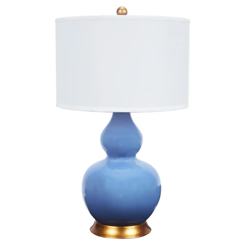 Old World Design will surprise you with the freshness of their look and style. This beautiful Parisian blue lamp features clean lines, gold accents, and a white linen shade.