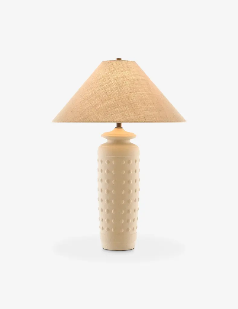 Layer some texture into your tabletop decor with the Olin lamp. Raised studs add a chic touch to the terracotta body setting off this charming modern design. A matte finish brings an earthy tone to the lamp for grounded warmth in the room.