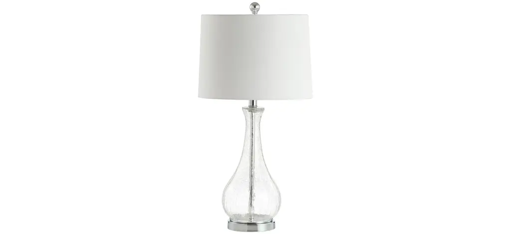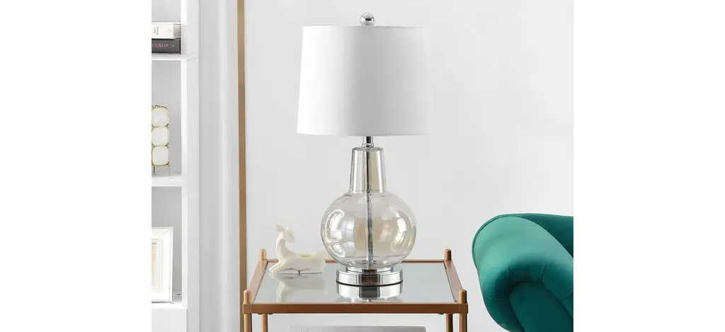 This stunning Olinda Table Lamp radiates beauty with its sculptural silhouette and contemporary chic. Designed with elegant luster glass, Atlas instantly upgrades any room with modern luxurious style. Often used in pairs to frame a sofa, its nickel base gives an extra touch of sophistication.
