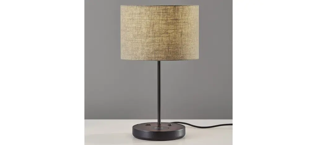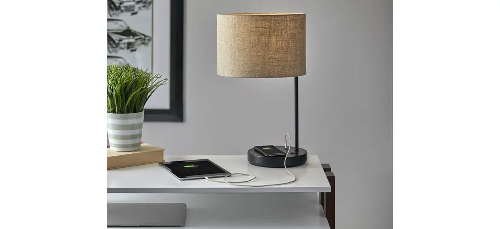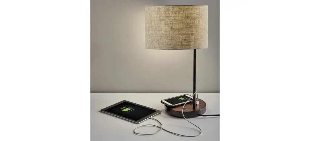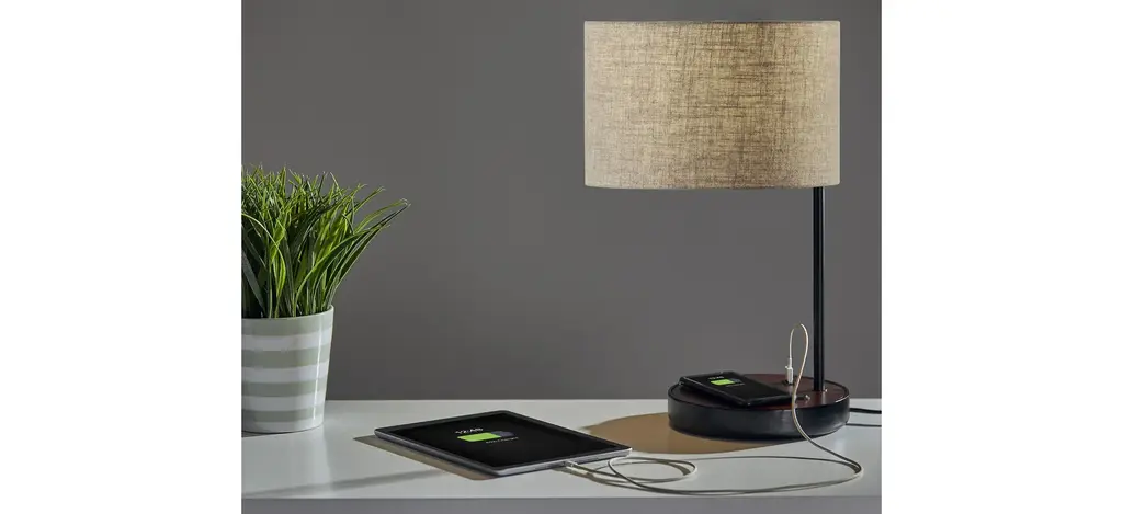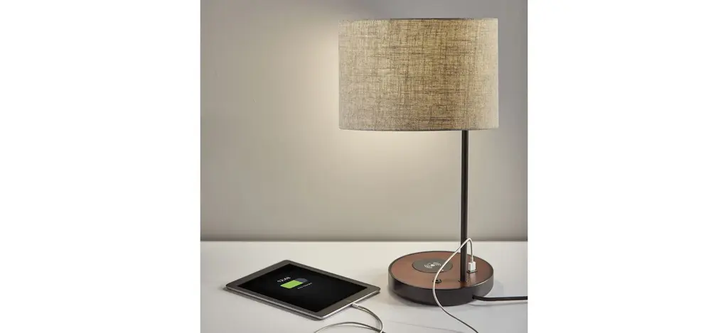 An essential addition to your bedside table, the Oliver AdessoCharge Table Lamp includes a wireless charging pad with Qi inductive charging technology. A matte black finish is mixed with walnut wood for mid-century modern appeal. A natural fabric shade reveals its beautiful texture when lit. Many smartphones (list below) have Qi technology built in, so just place your phone on the pad and it will charge right up. No cords, no mess. It's that easy! All AdessoCharge product is Qi certified by the Wireless Power Consortium. AdessoCharge is unique in that you can use the AdessoCharge pad, the USB and the light all at the same time with maximum efficiency of all three. An easily accessible rocker switch on the base turns the lamp on and off. Just plug in the lamp and the charger will work. This wireless charging pad will charge your phone through most materials, do you do not even need to remove your case! Only metal will hinder the function of the charging pad to charge through the case.