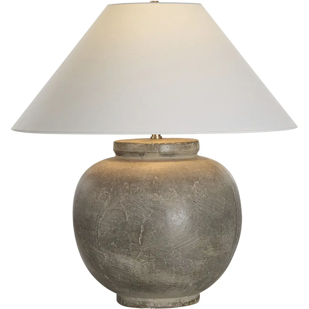 To say that the earthenware look is having a real moment in the decorating world is a bit of an understatement. The Olivia table lamp is a prime example of our love for this timeless material. Crafted from hand thrown ceramic with plenty of texture and a stunning olive wash finish, it brings an organic look and feel to any interior. In contrast to this earthy vibe is a large off-white linen tapered shade that sits atop a champagne plated fitting and included bulb that work together to fill the room with a dimmable filtered ambient glow. Whether you place a pair on a sideboard in a dining room or use one as a bedroom table lamp, the end result will be stunningly stylish.