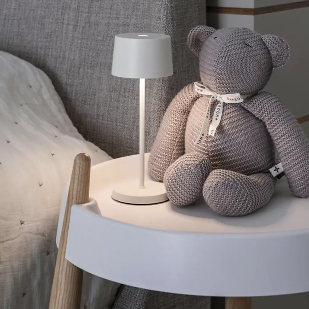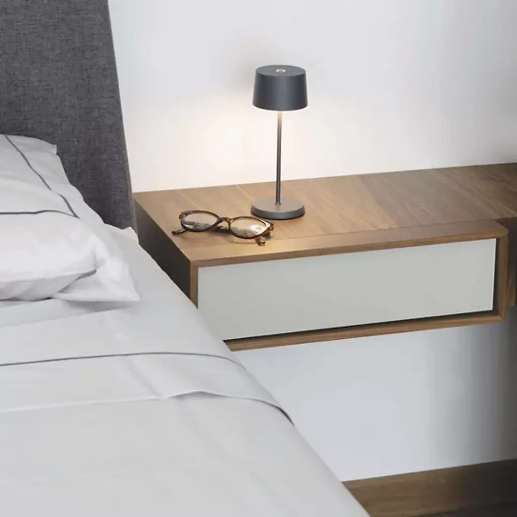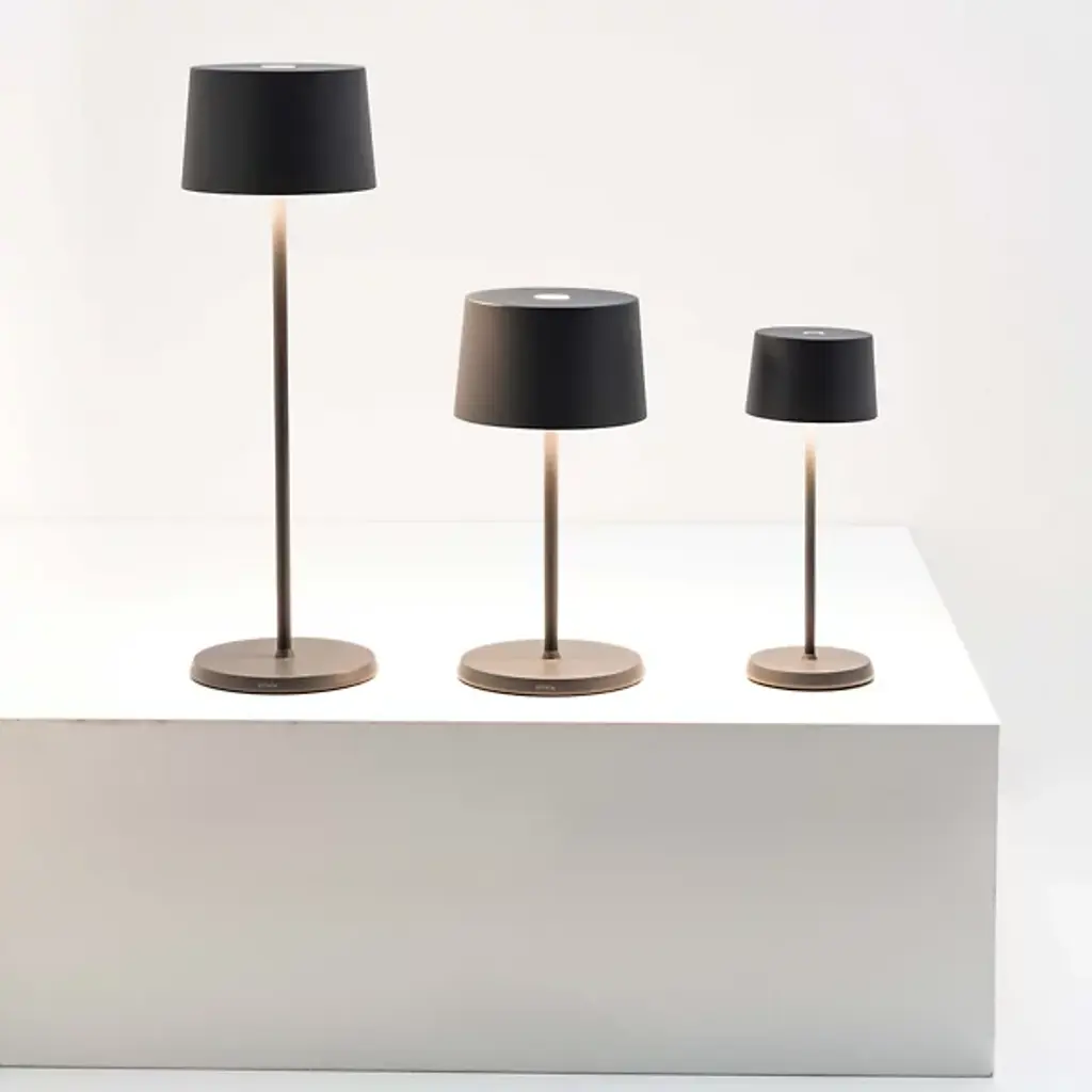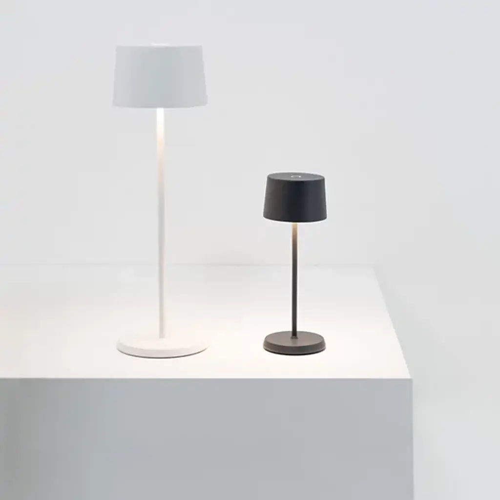 The Olivia Pro Micro Indoor/Outdoor Rechargeable LED Table Lamp from Zafferano America is a sleek, rechargeable cordless table lamp that combines portability with style. Crafted from die-cast painted aluminum, this modern lamp is durable and elegant, making it suitable for indoor and outdoor use. It features a convenient dimmer memory function, automatically returning to the last brightness setting used, offering personalized lighting every time. Compact and versatile, it is perfect for creating ambiance in any space, whether at home or outdoors.