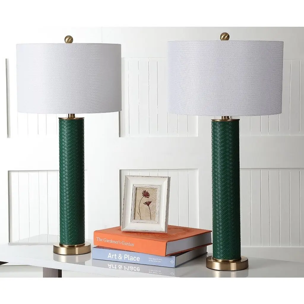 Ollie Table Lamp (Set Of 2) - 31.5 Inch Height - Lit4404 - Dark Green Woven - Safavieh